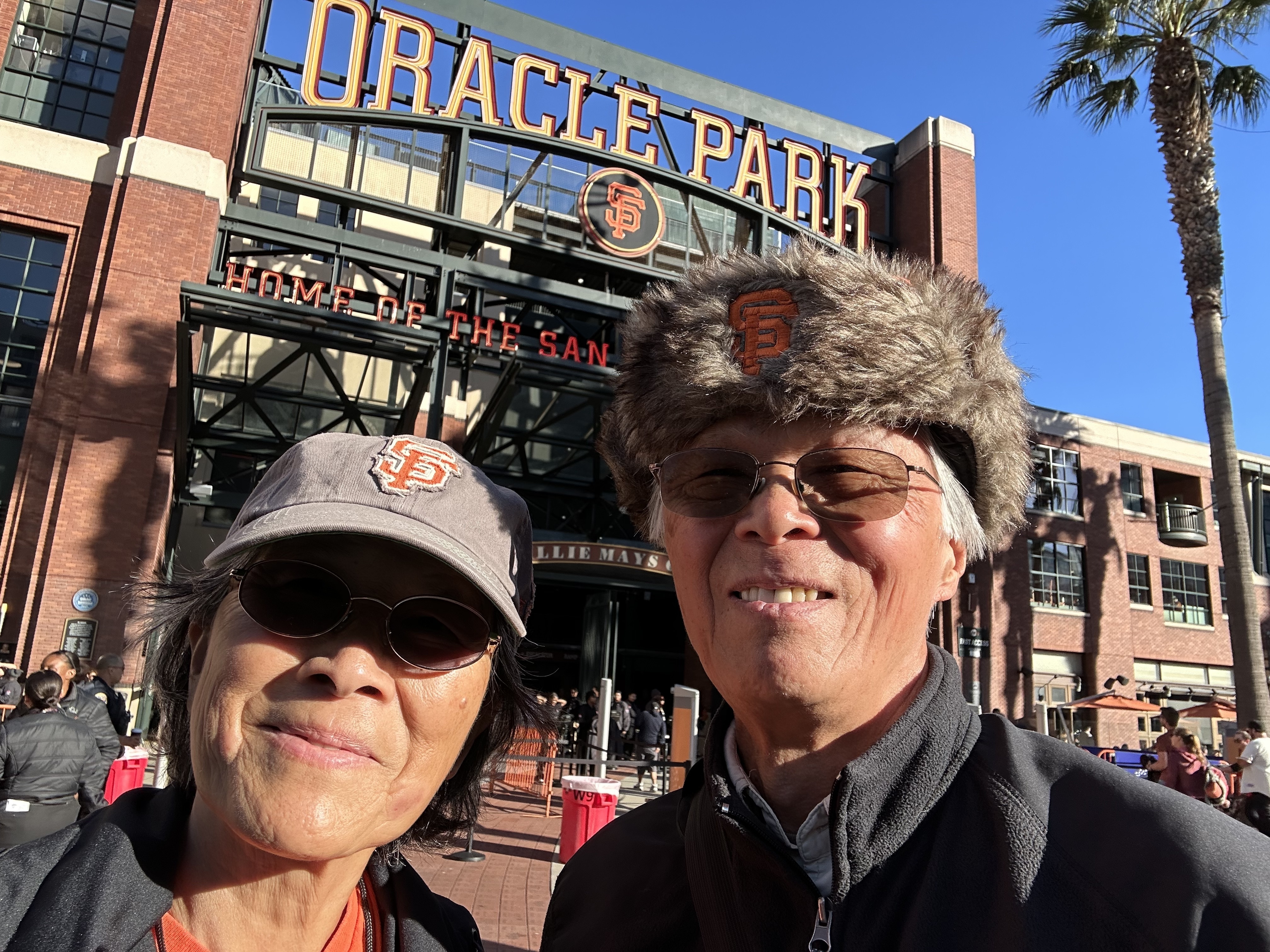 Thank you SF Giants for the tickets to an amazing game. And, the Drone show. My wife, brother and I enjoyed the evening immensely. Tough going for half the game. Then the Giants came alive. Fun bottom eighth! Photo taken showing the Willie Mays Gate, Oracle Park. Beautiful evening -- just my wife and I in the photo. Thank you again Giants! Important: the 9-11 banner naming all those lost is very well done. God Bless the USA.