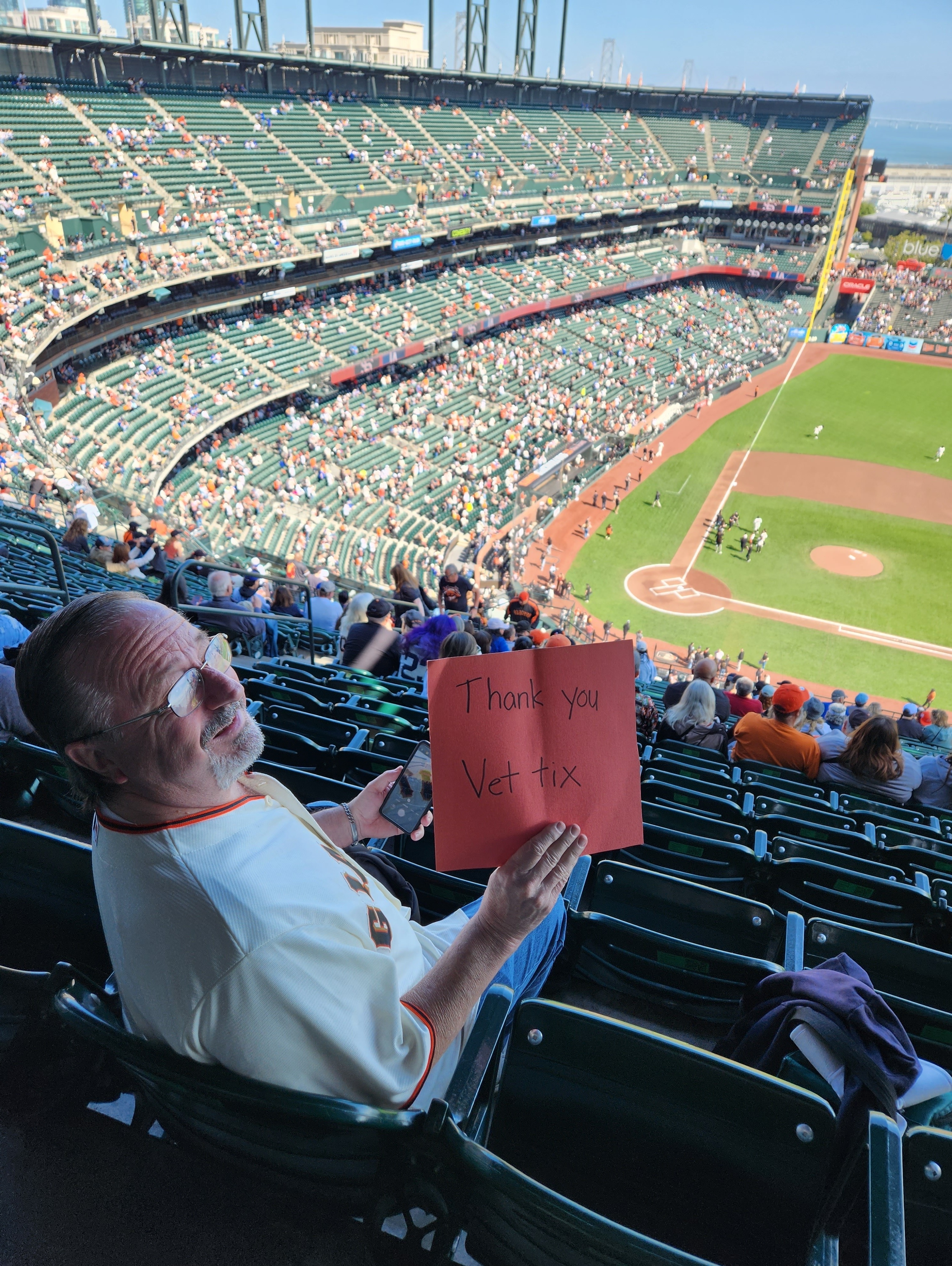 I want to express appreciation to both the San Fran Giants and the Veteran Ticket Foundation for the awesome tickets for the game yesterday!