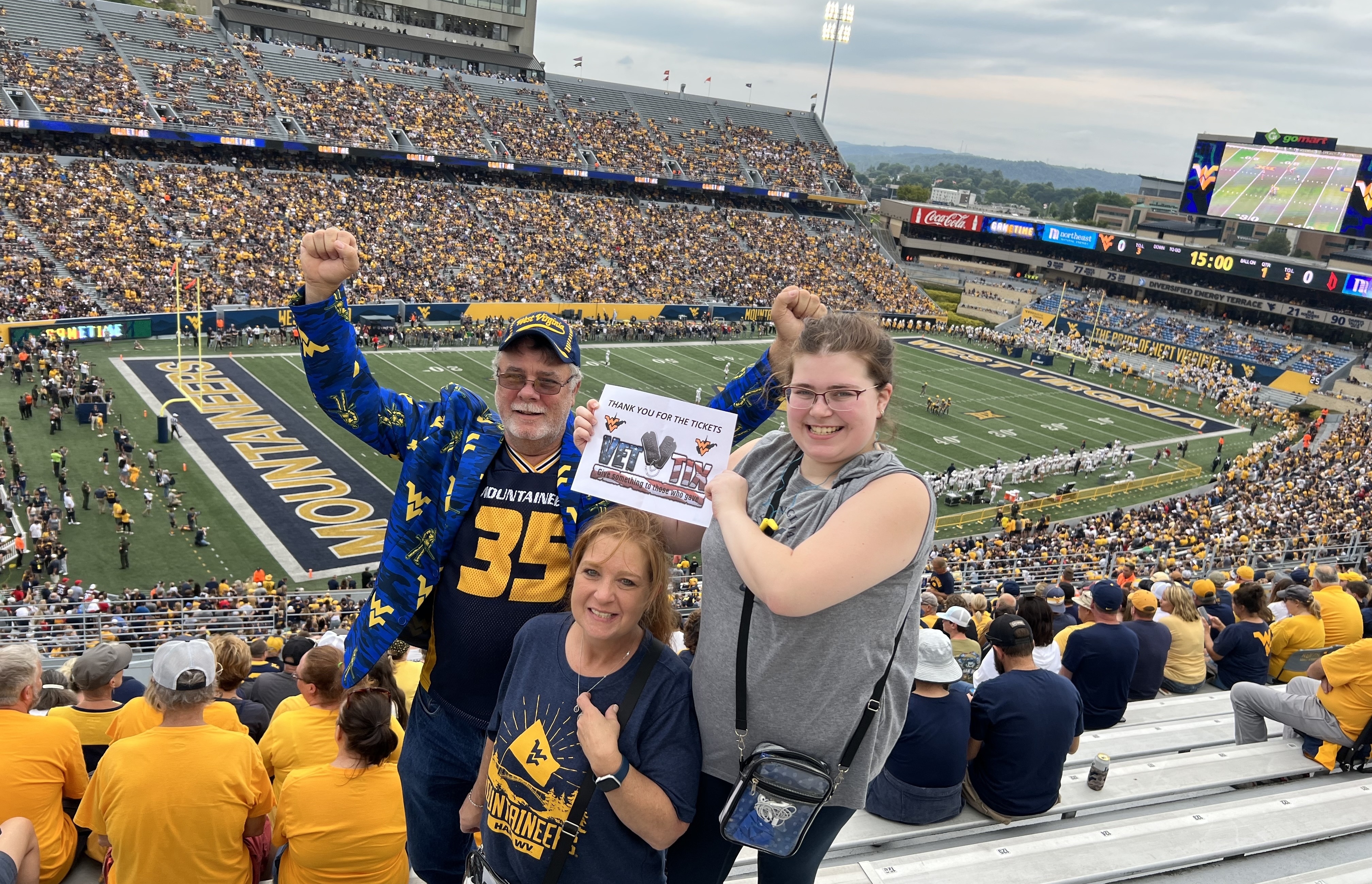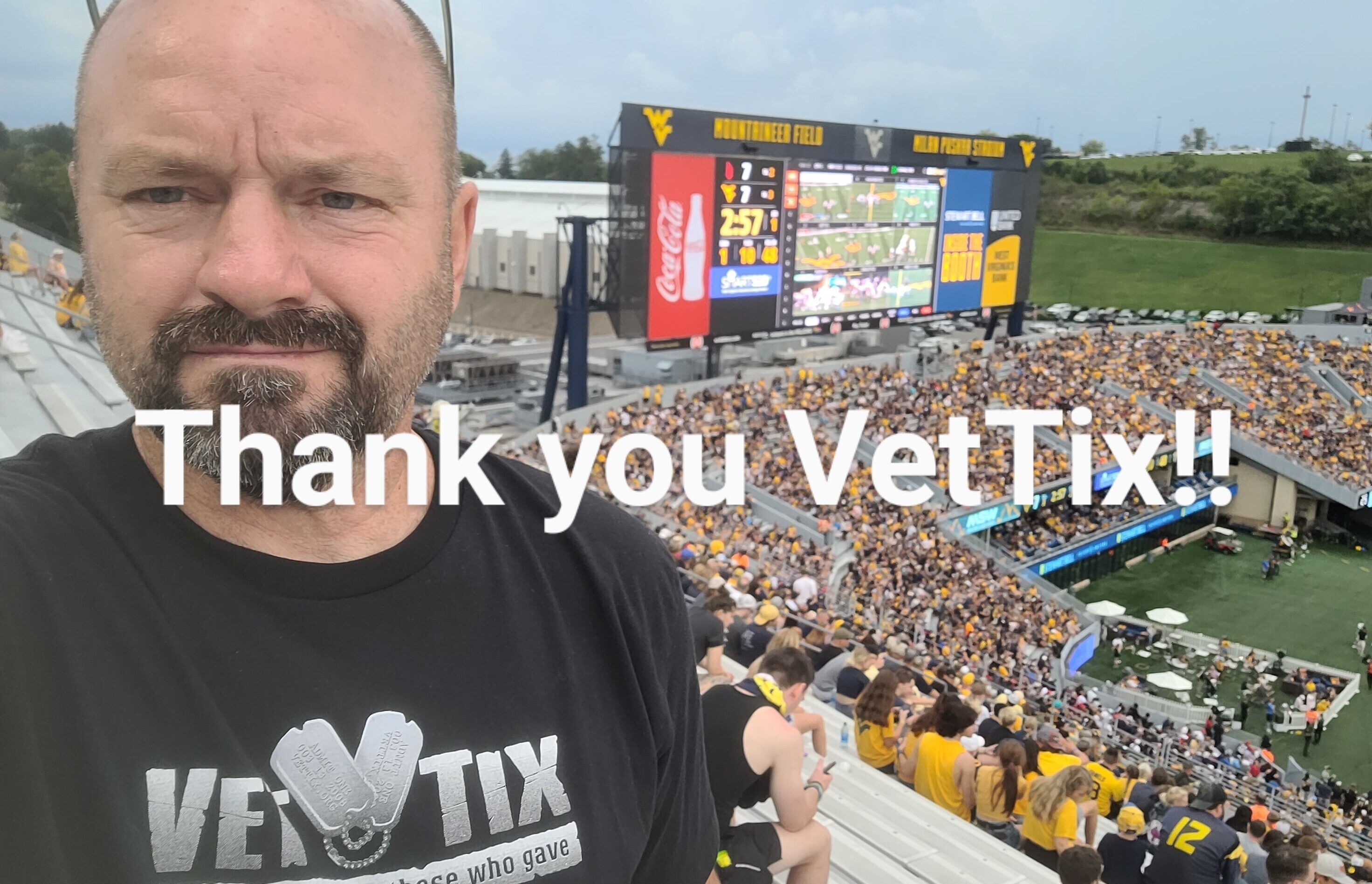 What an amazing time. Just want to say what a special day West Virginia University and Vet Tix provided my family and me. Looking forward to seeing the Mountaineers have a successful year. Thanks again