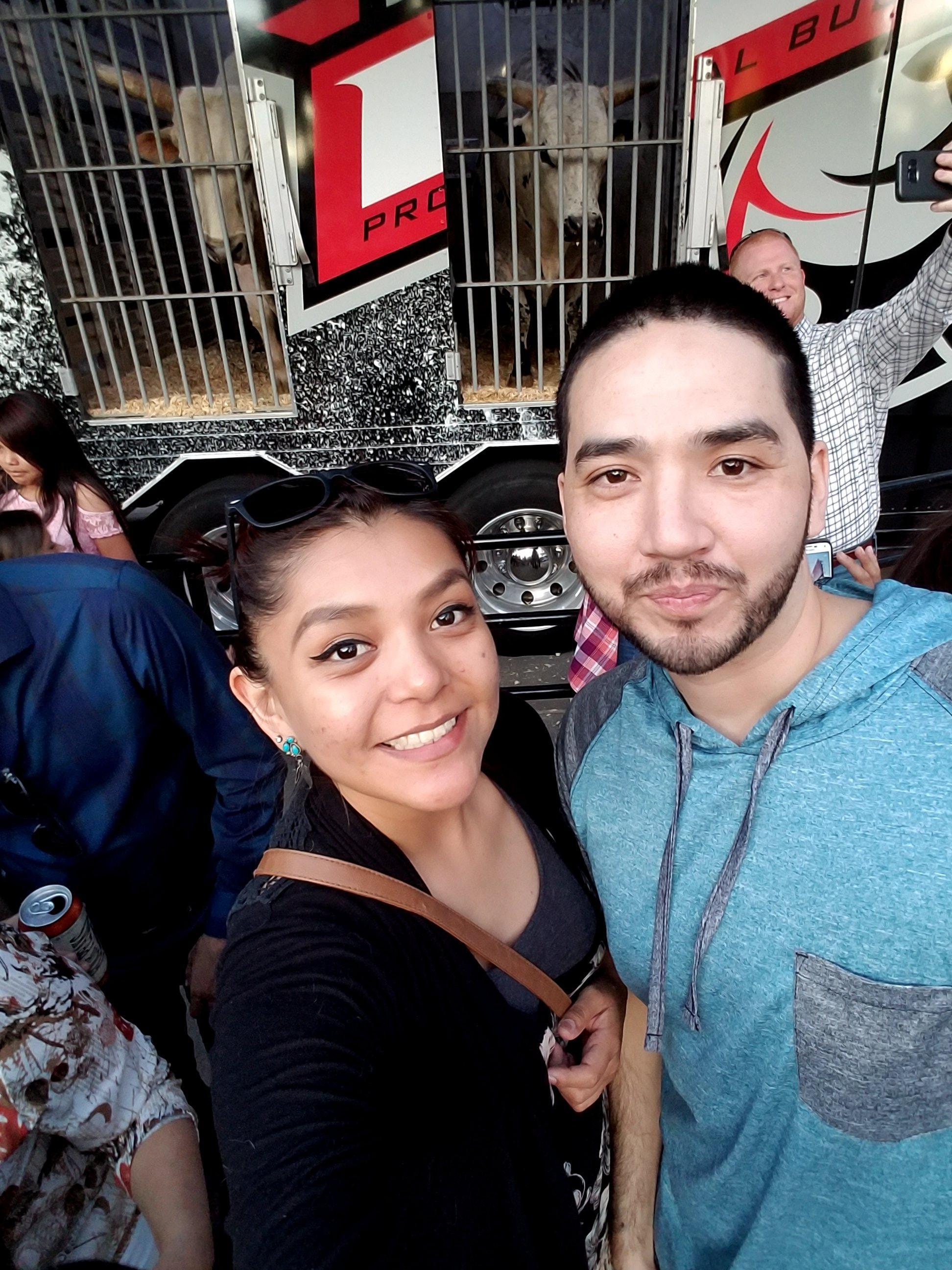A huge thank you for the opportunity to go see PBR Saturday night. Was amazing, What a great way to celebrate my belated birthday. I went with my daughter and her fiance. Please take note of the hat. Yes. We also took a picture of use in front of one of the live bulls out front of the arena. Wish I could have added that one too. Thank you again for making my birthday and time with my family soooo special. It is greatly appreciated. Michell, Alexa, and Luis