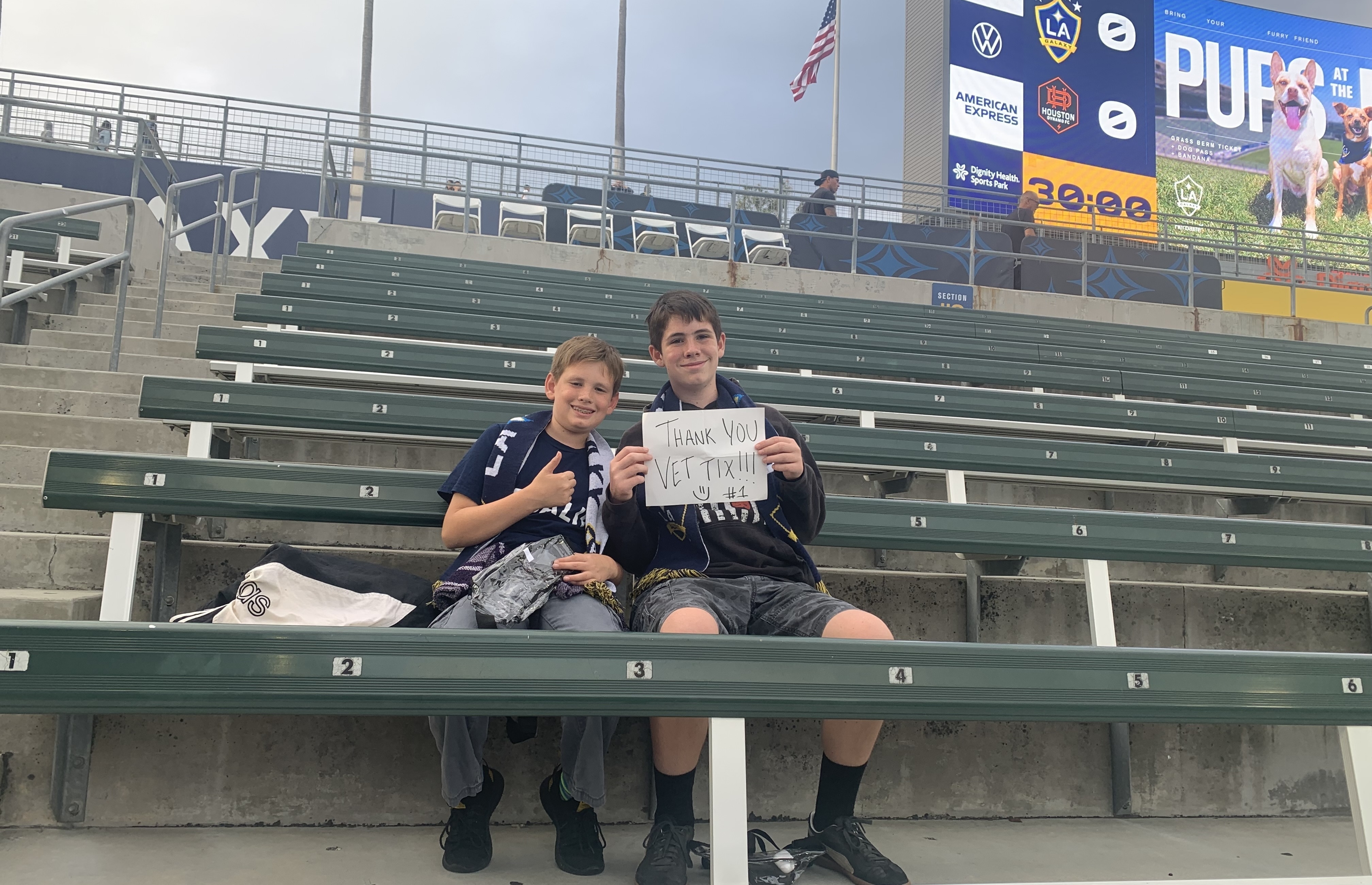 A Huge Thank You to La Galaxy & Veterans Ticket Foundation for the tixs to enjoy a great game of 2 teams that fought till the final whistle. We all had a great time only made possible by you & your generosity. I can’t Thank You enough.