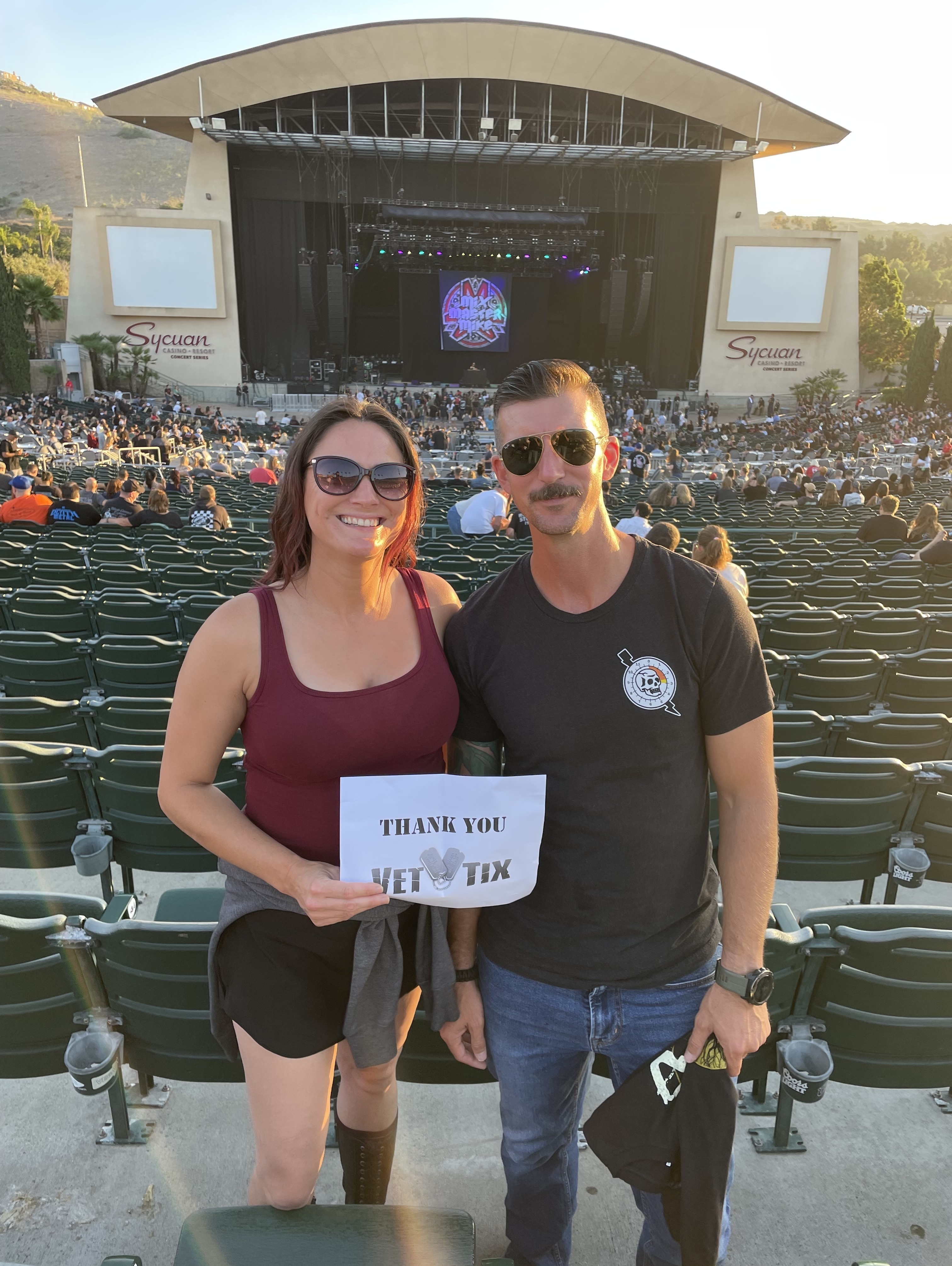 Great Show...Godsmack is amazing. Thanks for the tickets! (PS...bag policies prevent us from carrying anything large, like a sign, so the picture is just us.)