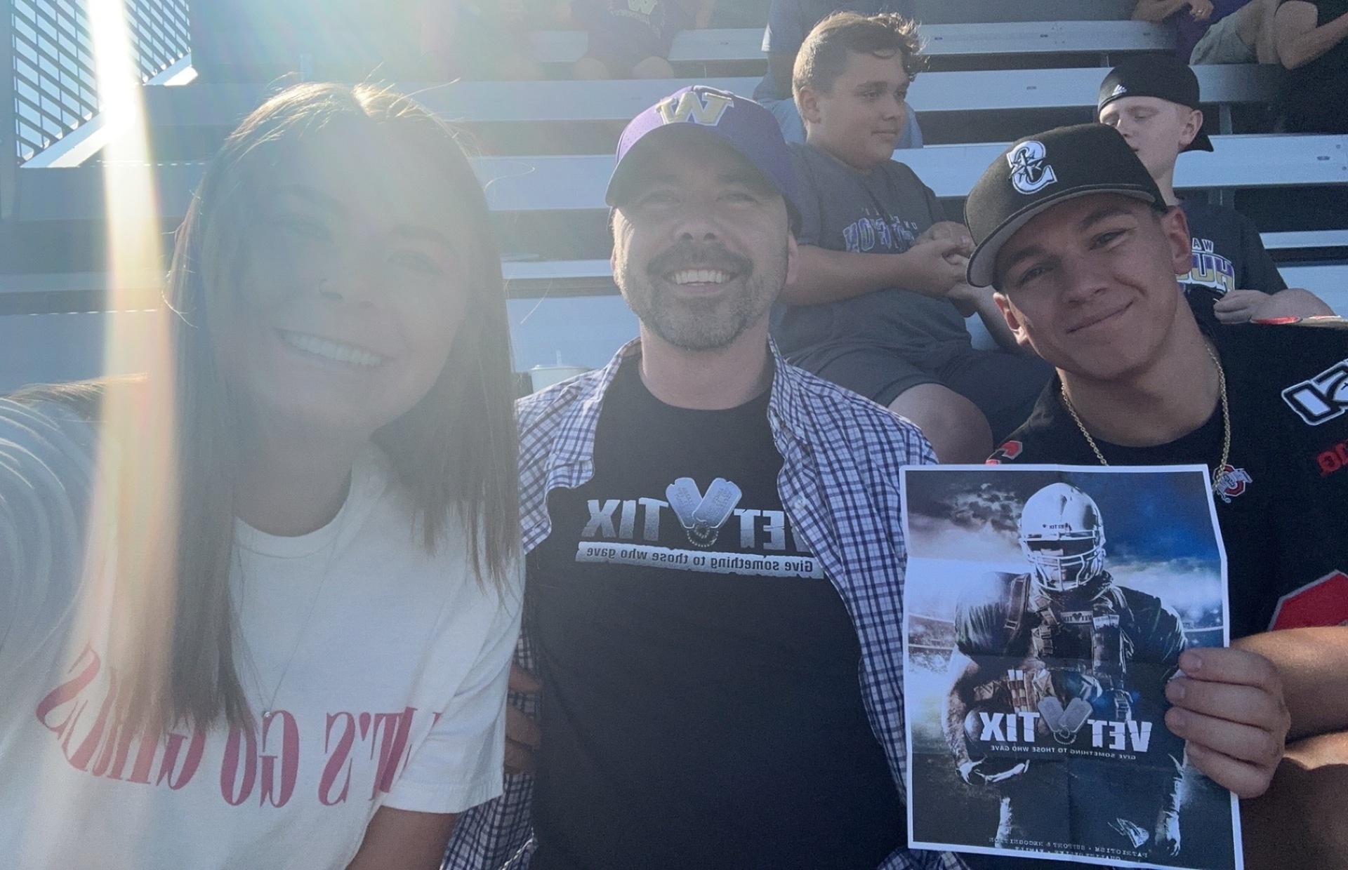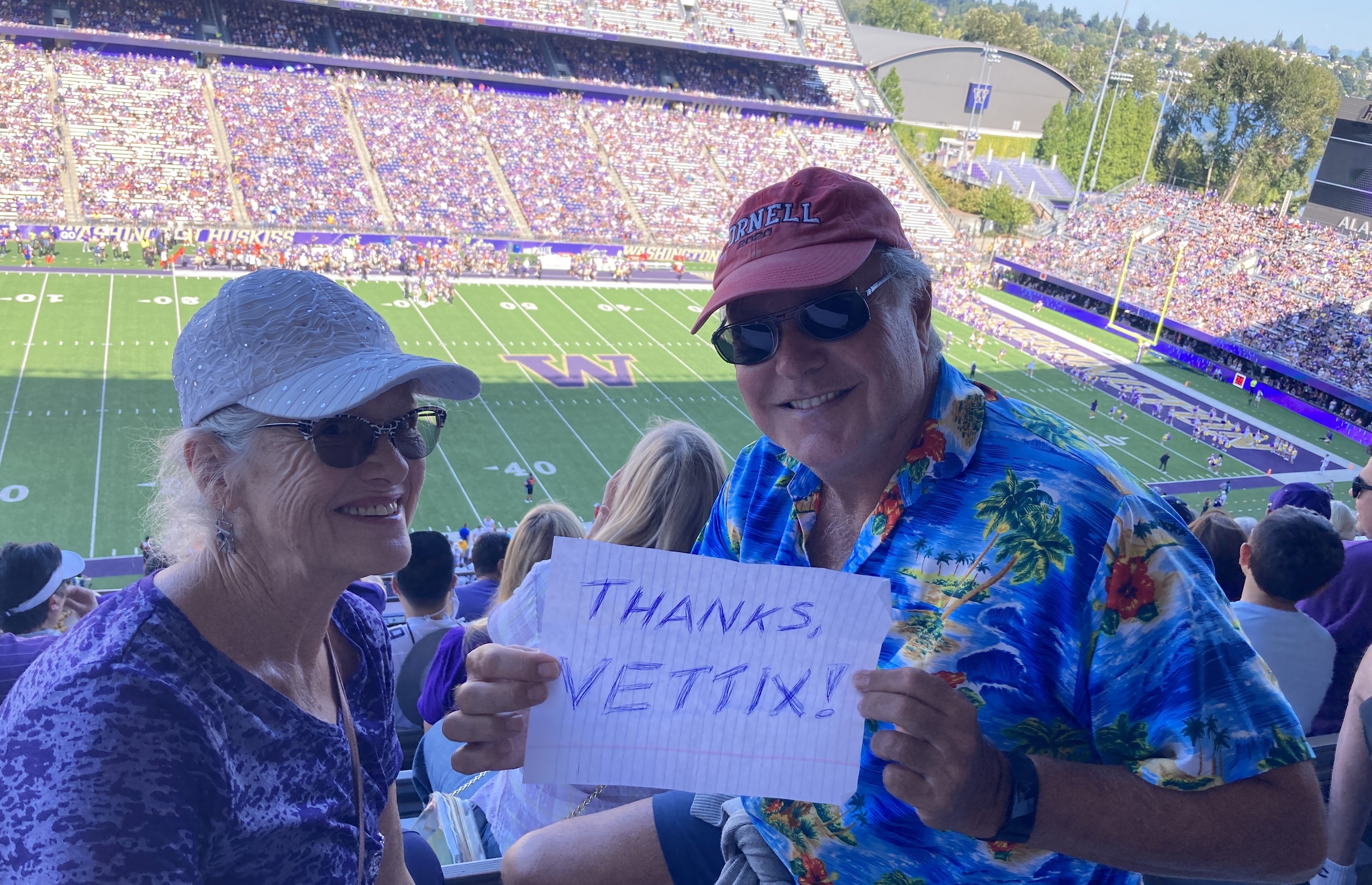 Thank you so much Vet Tix !! We not only got to enjoy the beautiful Seattle sun and lake Washington , and an Amazing 43 to 10 win by your team and my team the Washington Huskies!! As well as watch a local home town hero honored . I wanted to say a real special thank you to the whole Vet Tix team for all you do everyday for us veterans and our families !!