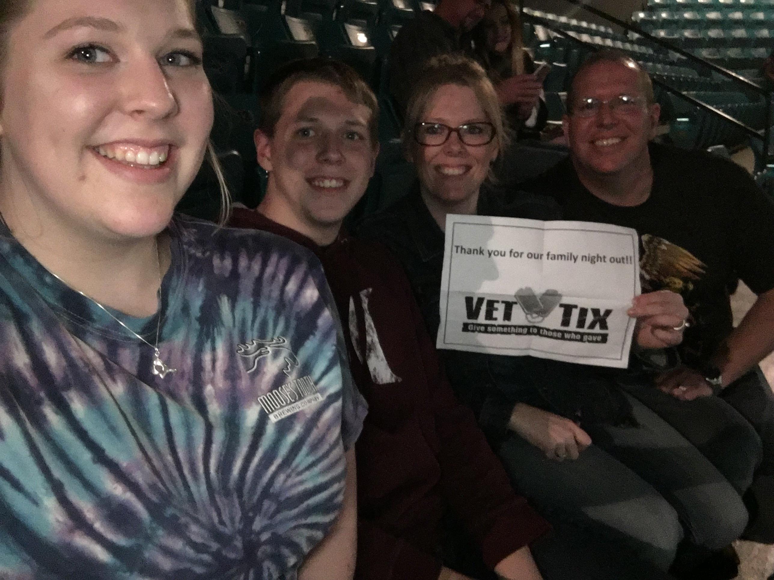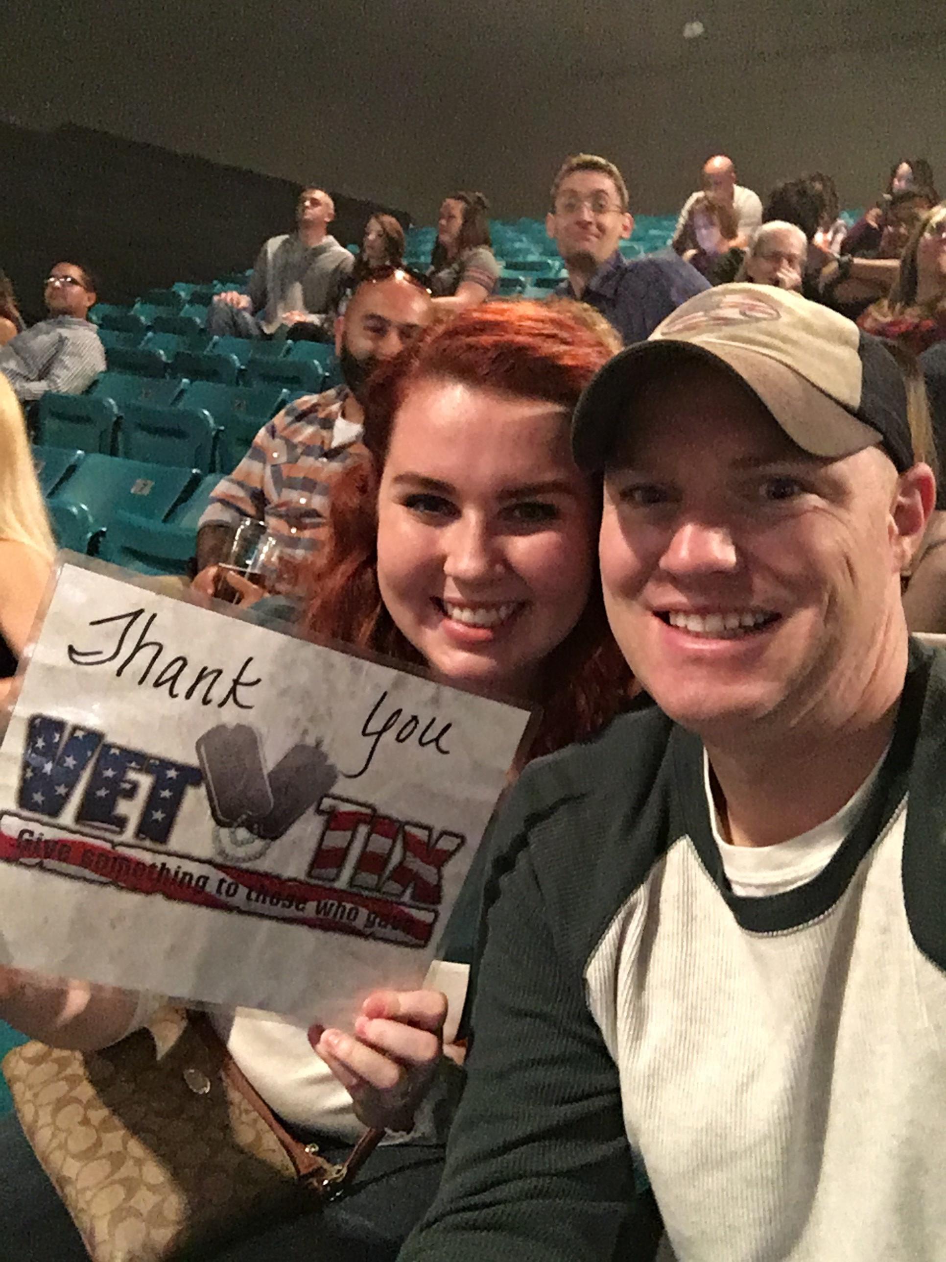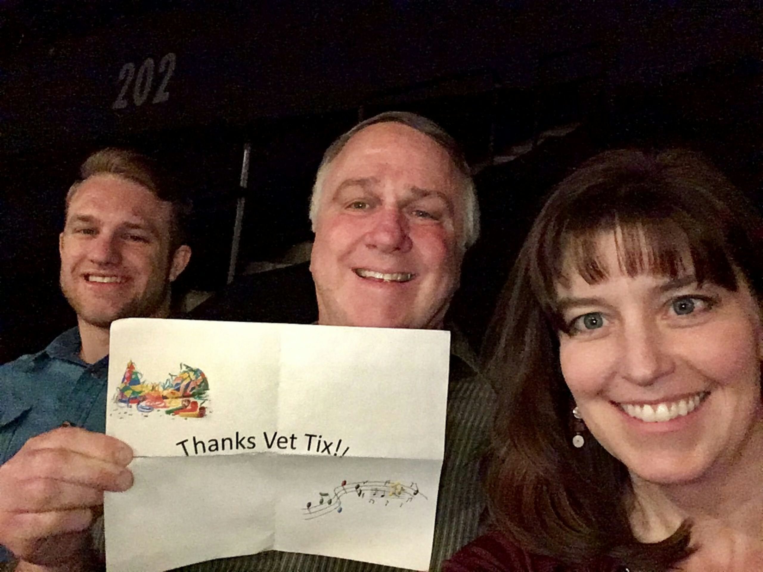 This was a great show that the donors gave us a chance to see. We knew the show was coming and wanted to go but also knew we couldn't afford the tickets but thank to you we got our chance. Thank you Vettix and Thank you to the Donors. We had a blast!