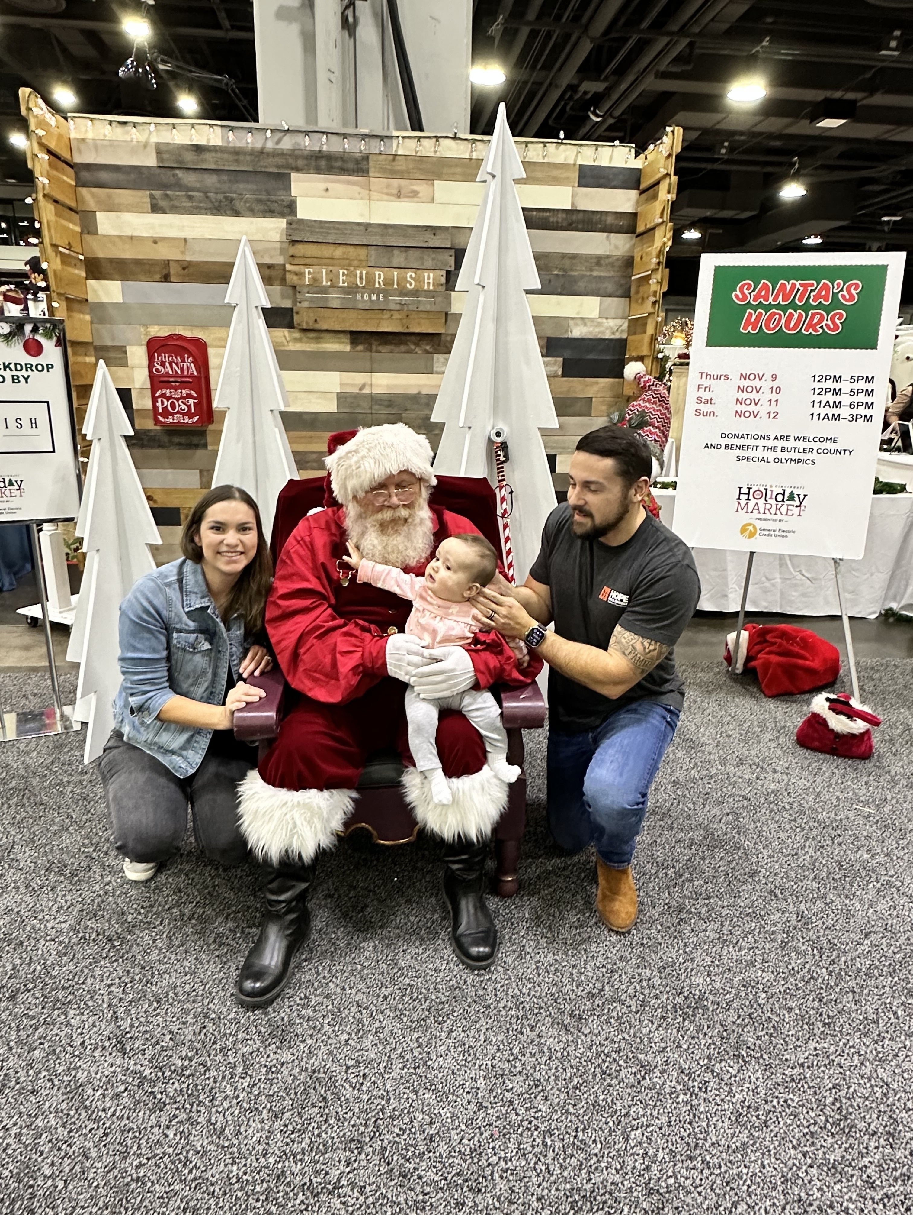 Thank you Marketplace Events for tickets to the Greater Cincinnati Holiday Market. My family had a great time and I forgot to get a group picture of all of us. However, this one is most important because it my granddaughter with Santa, my son and daughter in-law. This is her first picture with the jolly old guy. We loved all the vendors and supported them well with our purchases. Thanks Vet Tix for your continued commitment supporting our Veterans and families.