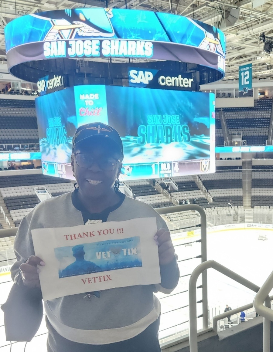 Thank you, Vet Tix & San Jose Sharks!! Awesome seats for the home opener. So happy to be able to take my kids to their first NHL game. We wouldn’t have been able to afford the night out without your generous donation. Go Sharks Go!!
