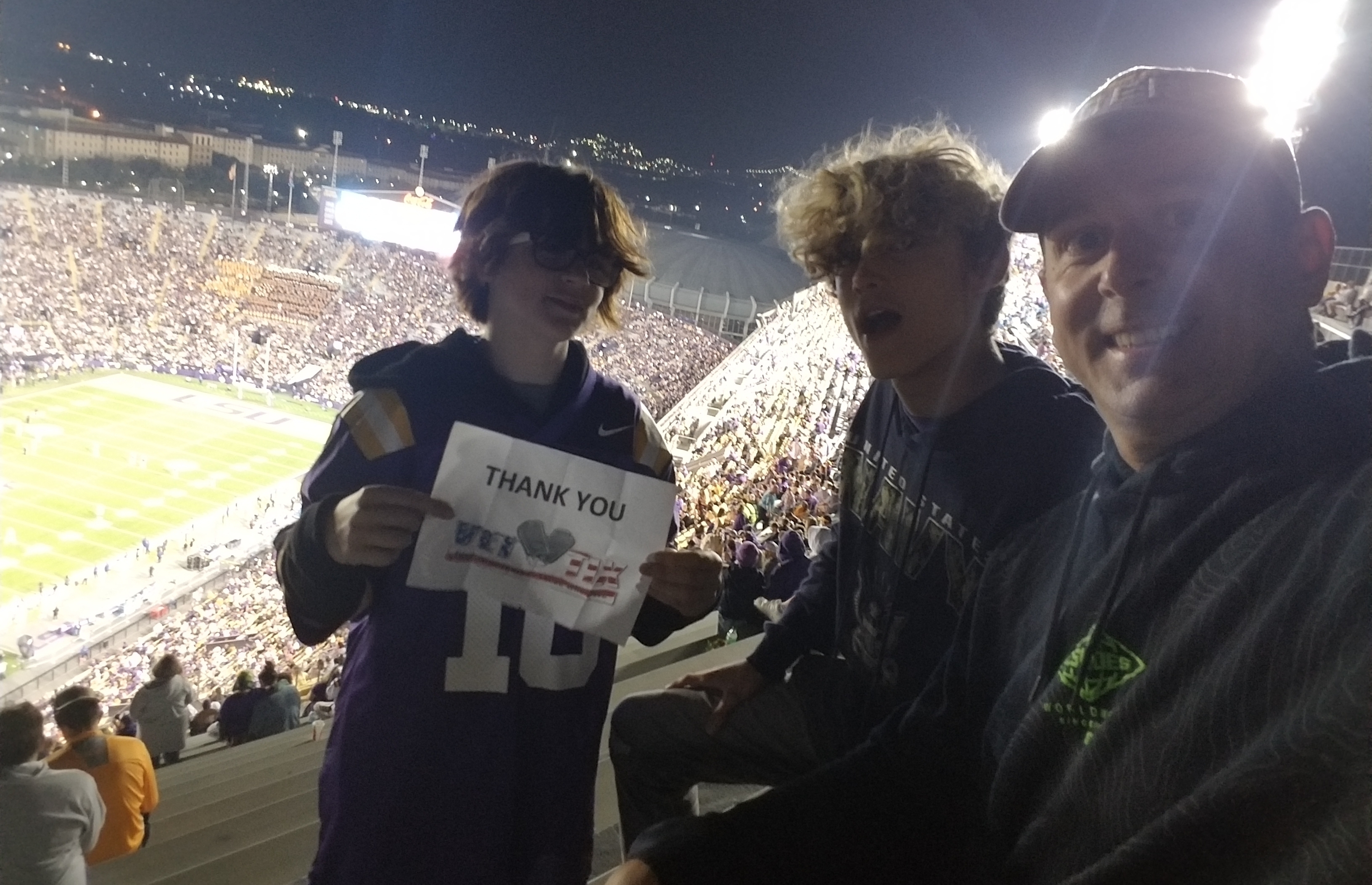 Big thanks to Louisiana State University for the donated tickets. We really enjoyed ourselves and we got another win in Death Valley Stadium. Shoutout to Vet-Tixs