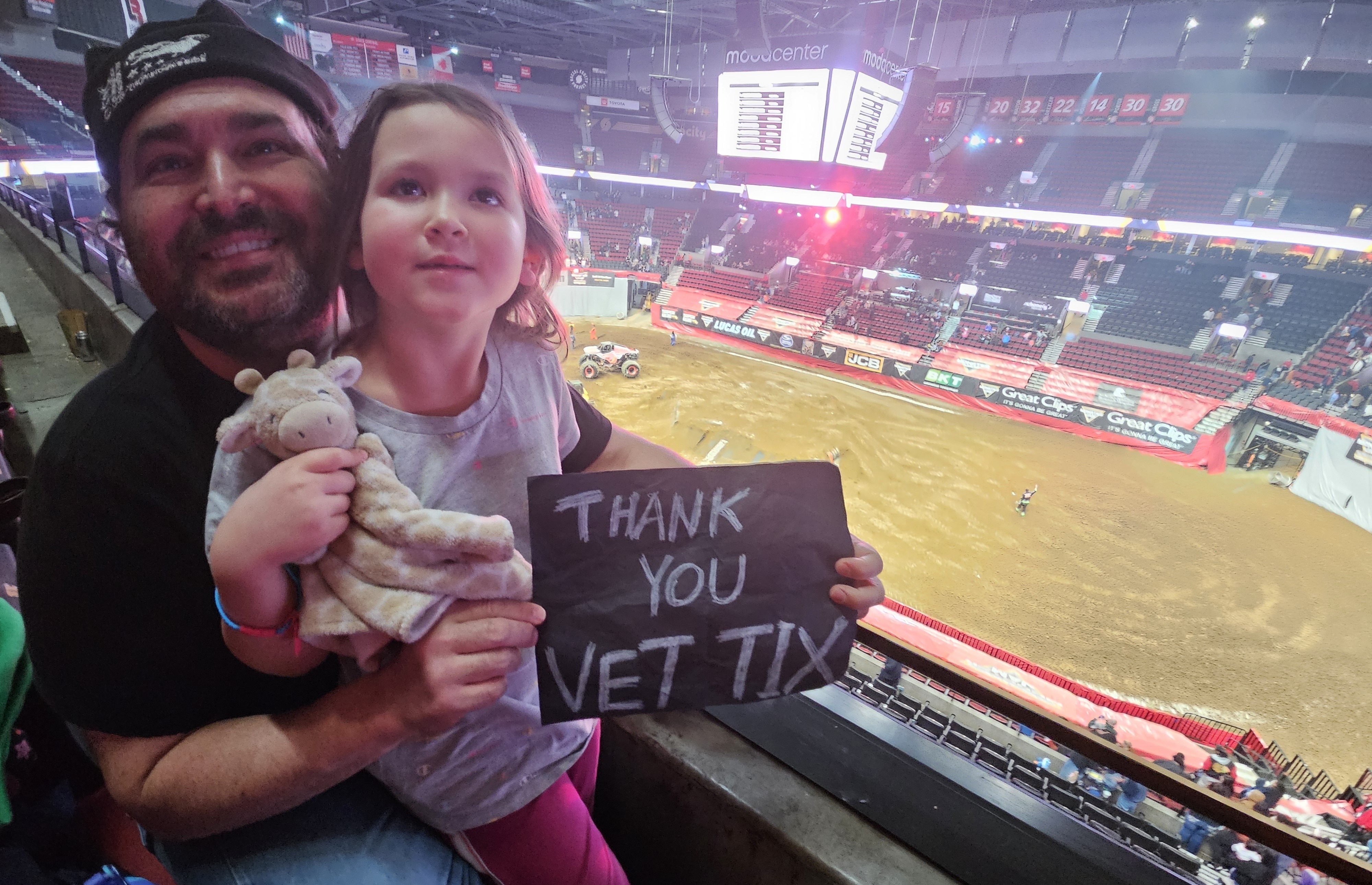 Thank you so much Feld Entertainment, Inc. and Veteran Tickets Foundation Purchases for this incredible experience! It was a thrill for all of us to see our first Monster Jam event. My daughter loves seeing Megalodon her favorite monster truck. Thank you again for making this possible and for bringing fun and enjoyment to my family, we appreciate it so much.