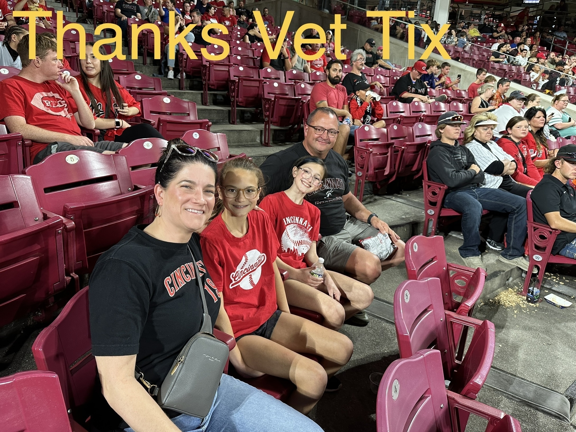 My family had a great time regardless of the titanic let down by our beloved Reds. Thanks so much Vet Tix.