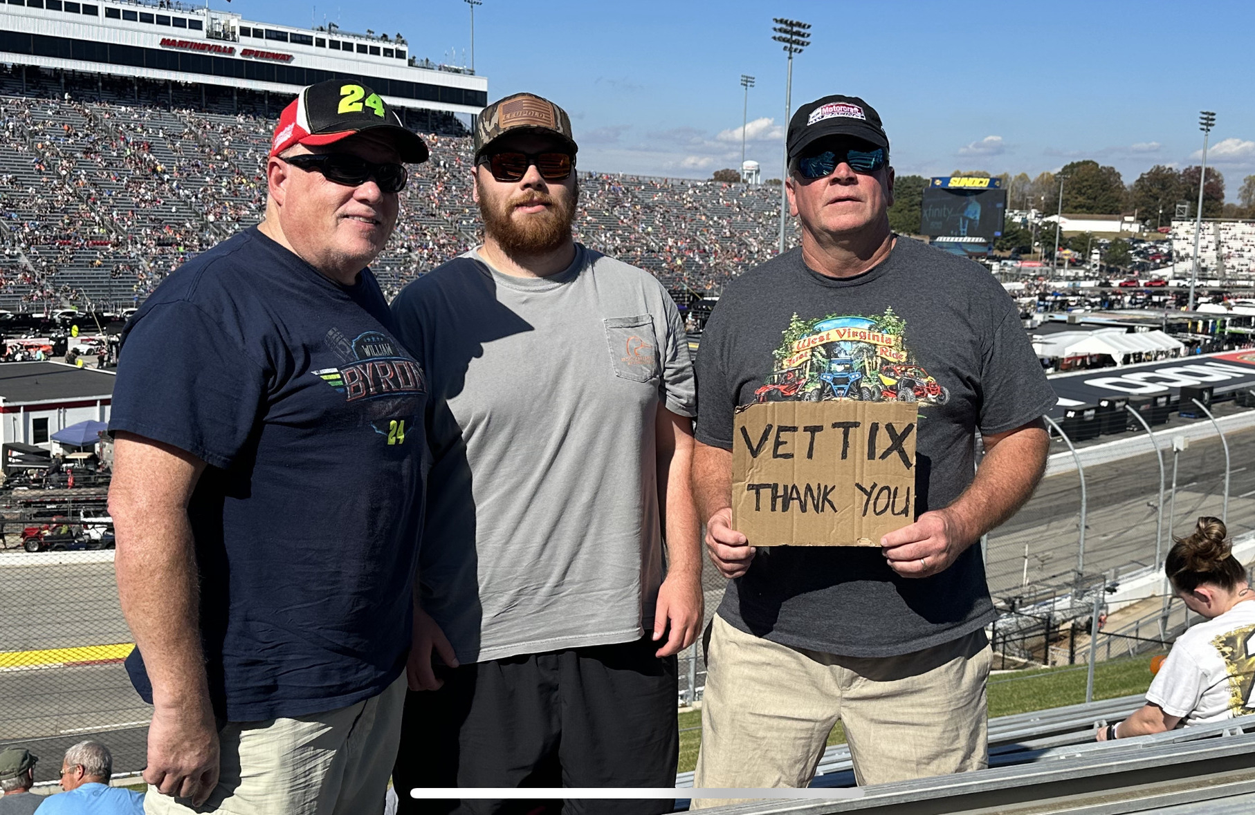 Thank you so much Vet Tix and Martinsville speedway. Another great race and a SOLD OUT one at that!! Thanks again, we had a good time.