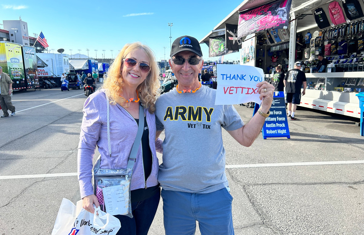 Thank you for the tickets to NHRA! We appreciate you Speedway Motorsports inc., and Veterans Tickets Foundation Purchases! We had such a wonderful day watching drag racing. We just loved it!! Thanks again!!