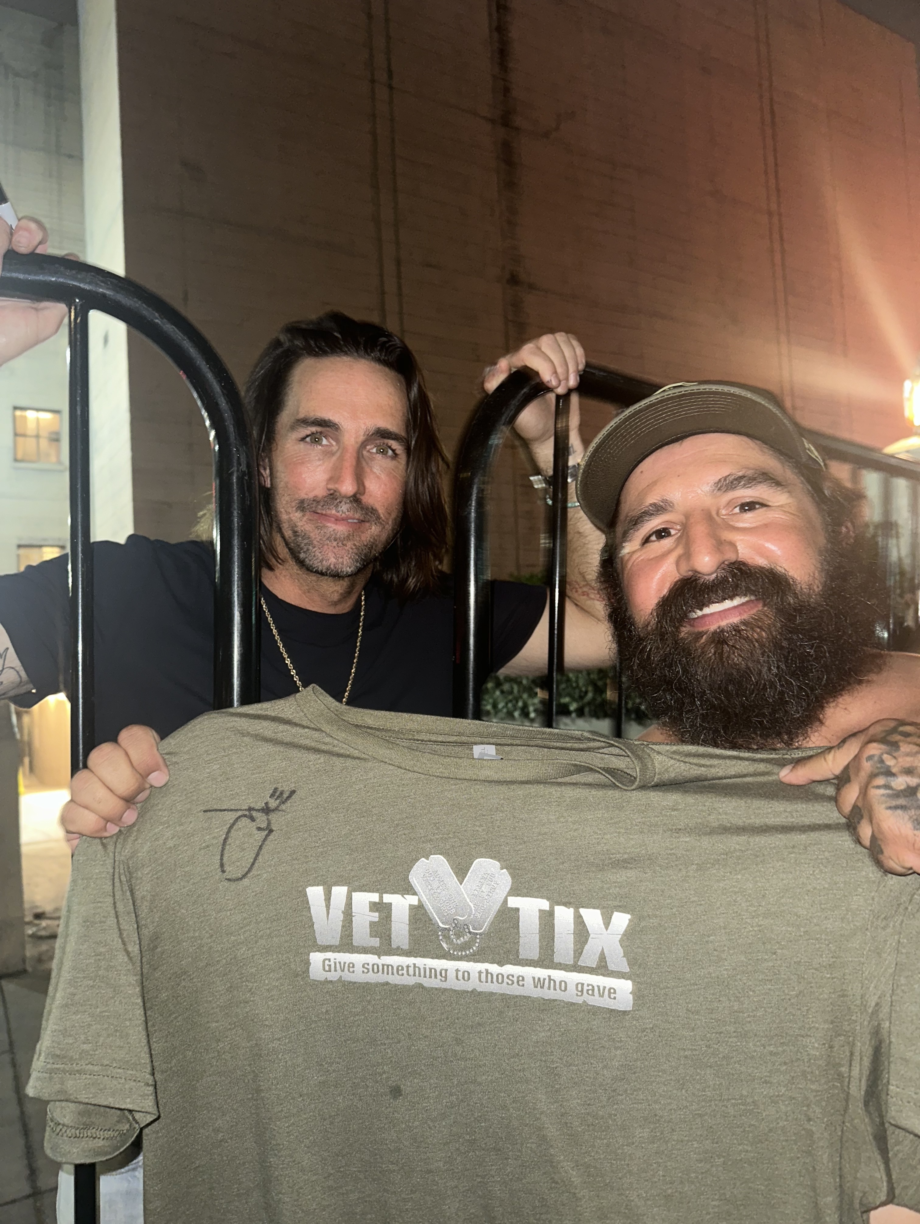 Thanks to not only Live Nation and Vet Tix, but to Jake Owen. I shared with him that I was fortunate enough to be there because of Vet Tix and he not only came and took a picture, but also signed my Vet Tix shirt. Jake Owen is awesome and is a supporter of our Military and Veterans!!!