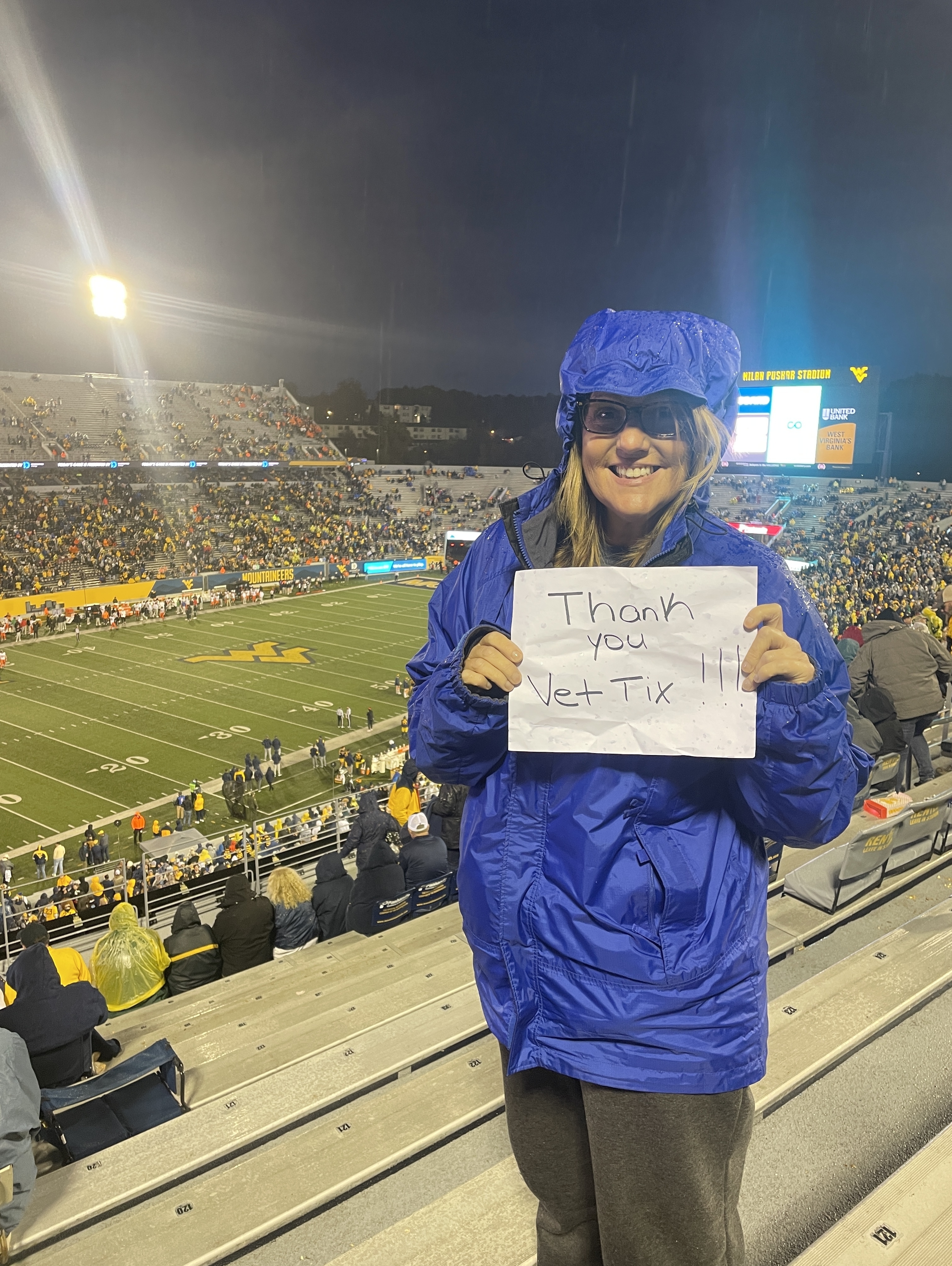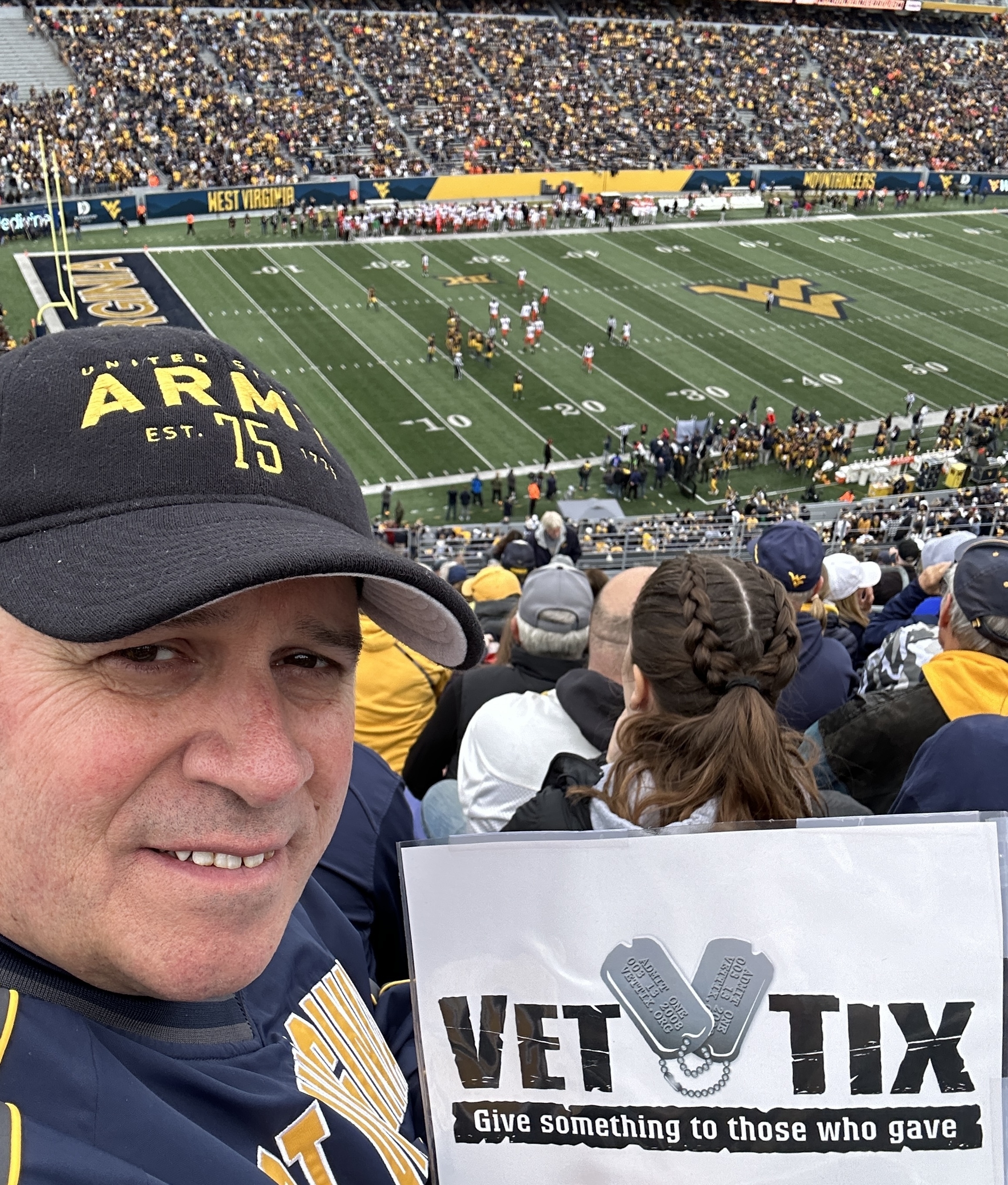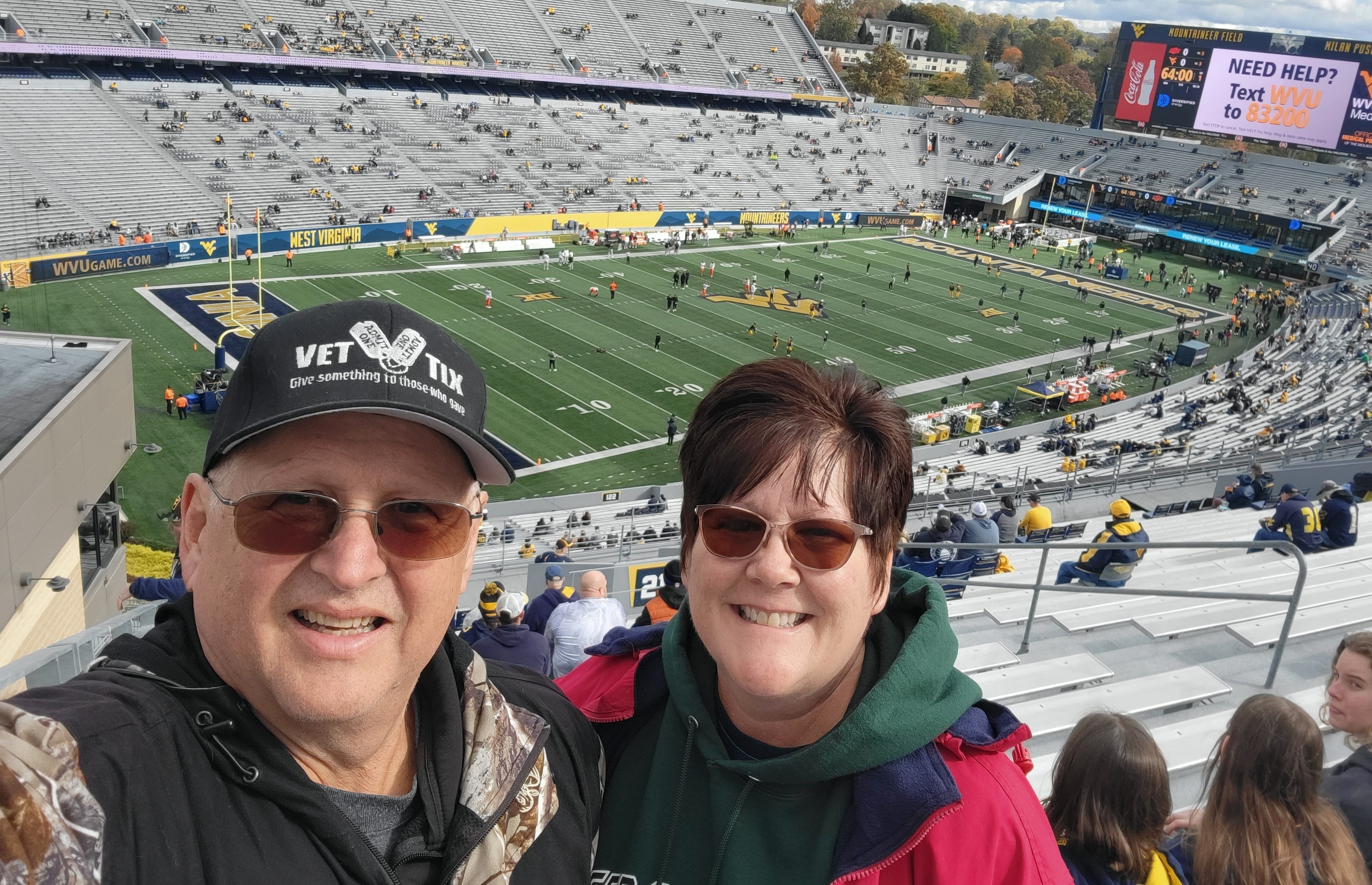 Thanks to West Virginia University and VetTix for a great time! Wish the outcome would have been better for the game, but memories were built!