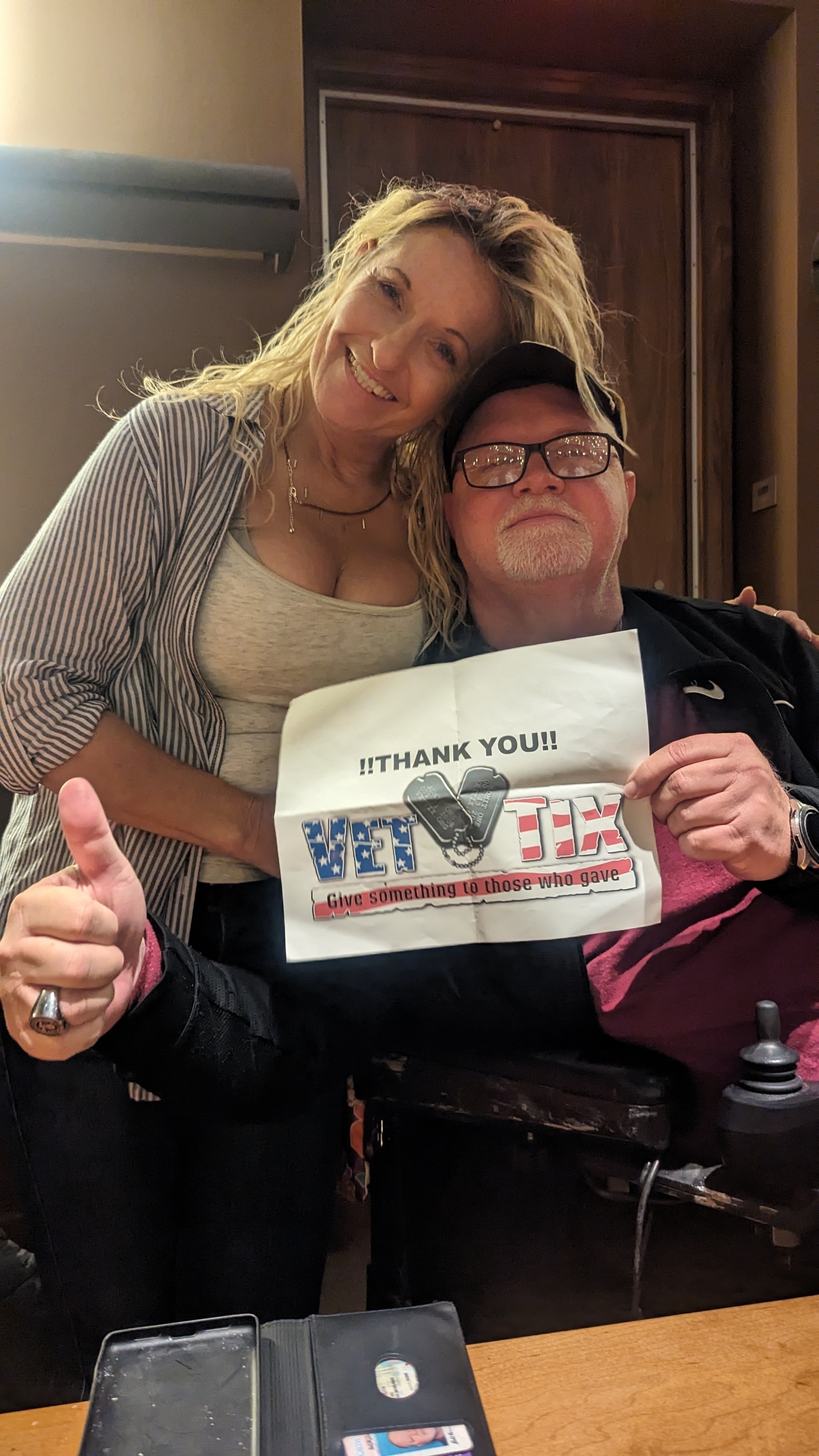 Thank you so much for these tickets… It was a fabulous show, and all four of us had a great time! My pic only has two of us, but all four of us were there!