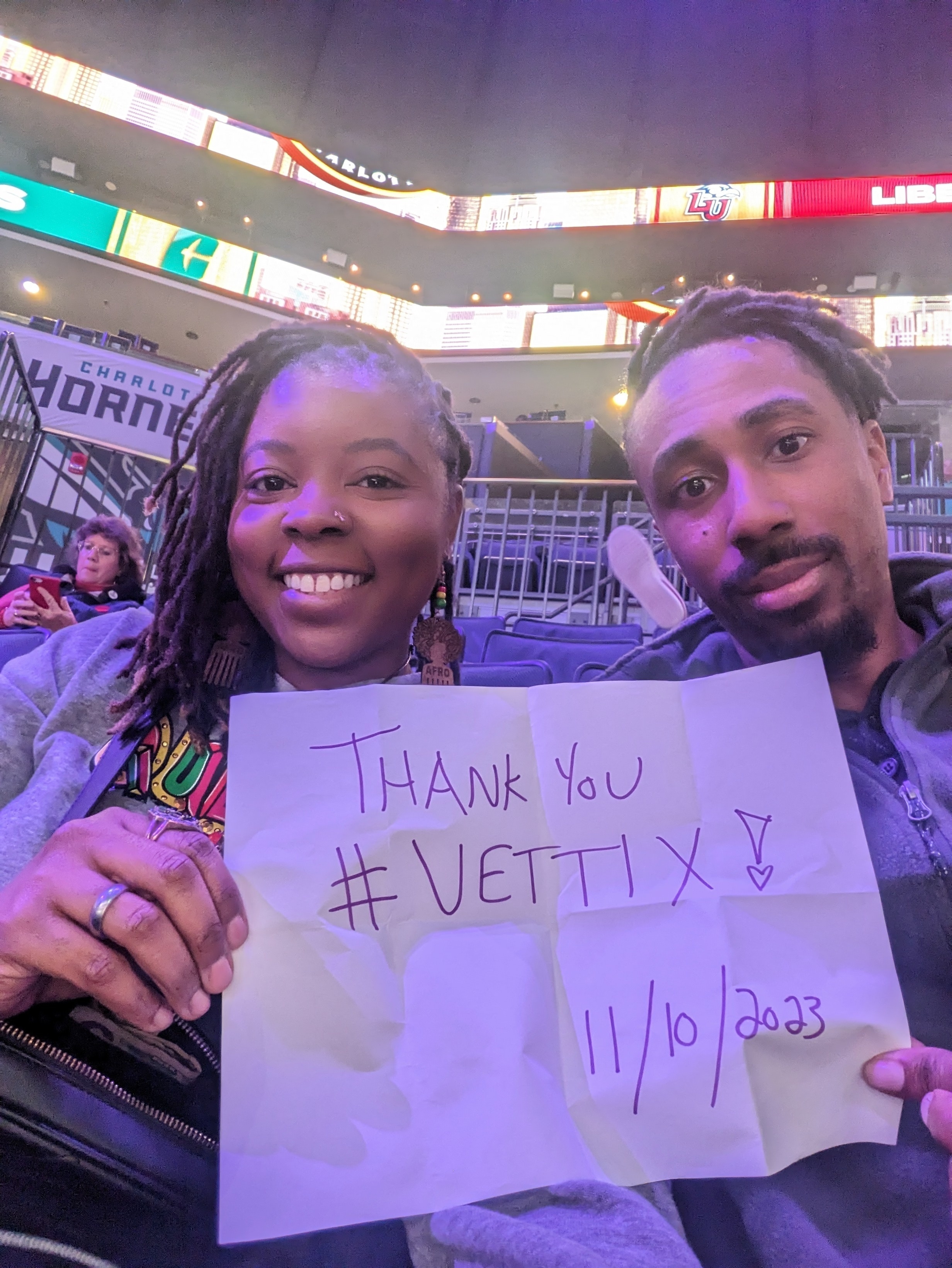 Thank you Vet Tix. My wife and I thoroughly enjoyed the college basketball triple header in Charlotte. We appreciate you and the Hall of Fame committee for recognizing veterans. All 3 games were exciting and it felt like March Madness in November. 😁