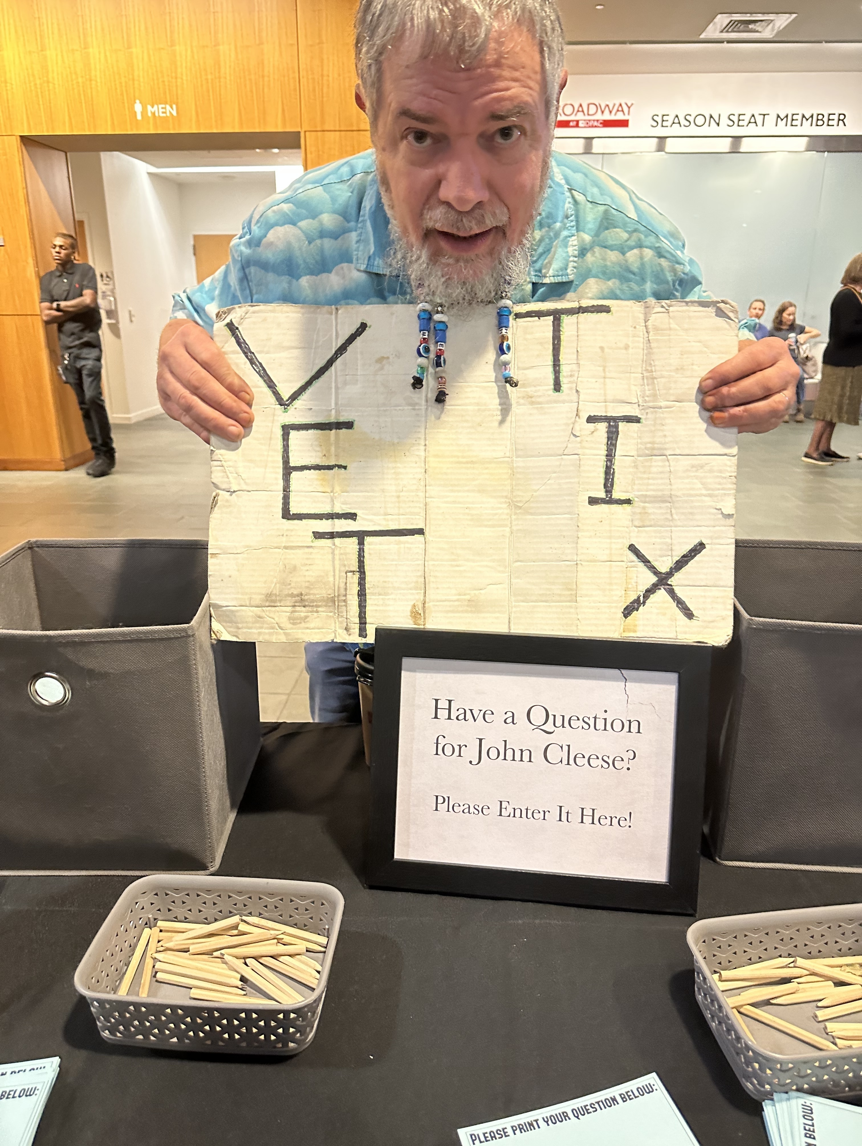 Thank you so much for the ticket to see John Cleese! I was good to get out of the house and enjoy a good show for a couple of hours.