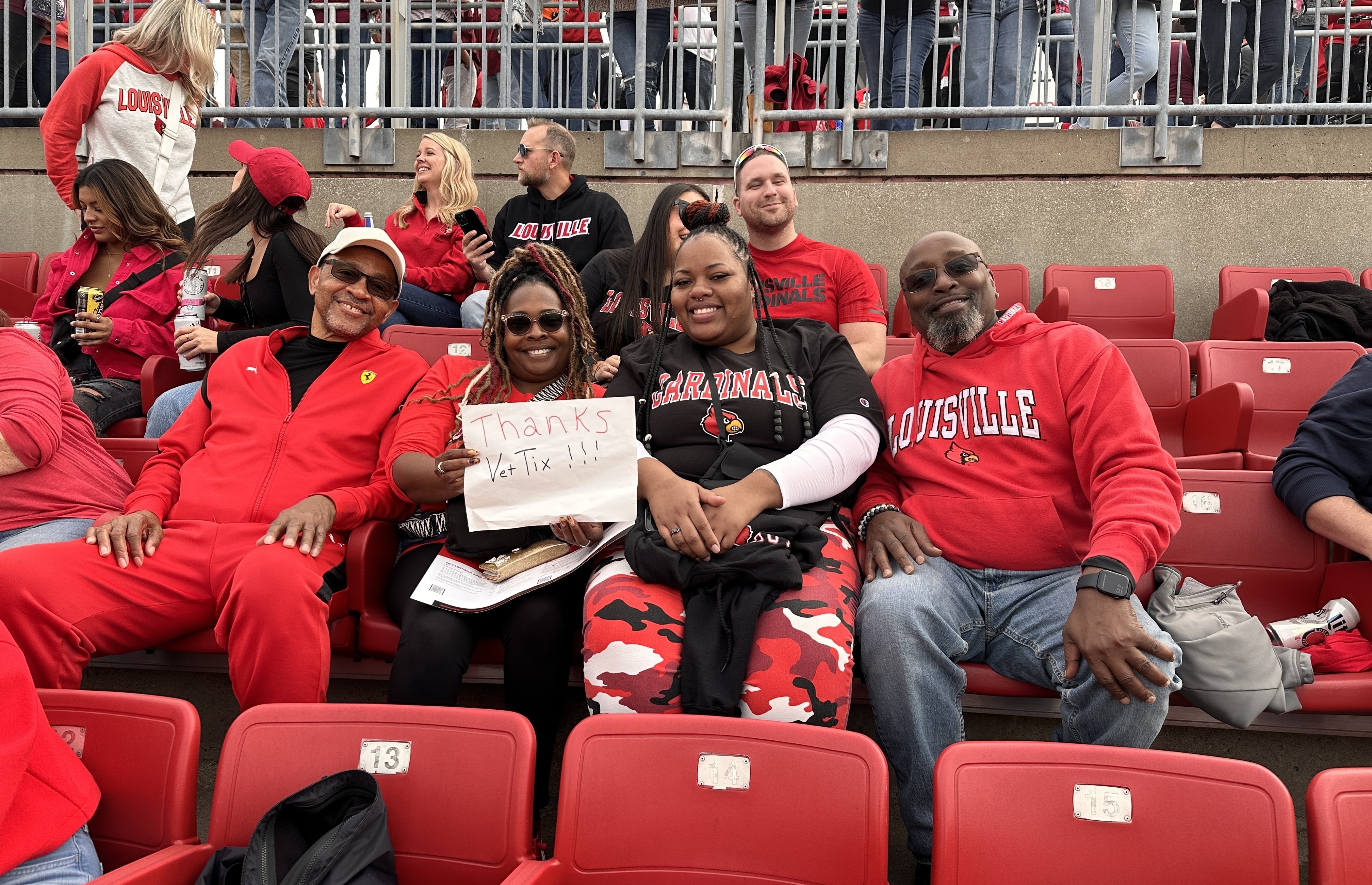 This was our first event as Vet Tix recipients and we all thoroughly enjoyed the U of Louisville football game. Thanks so much!!