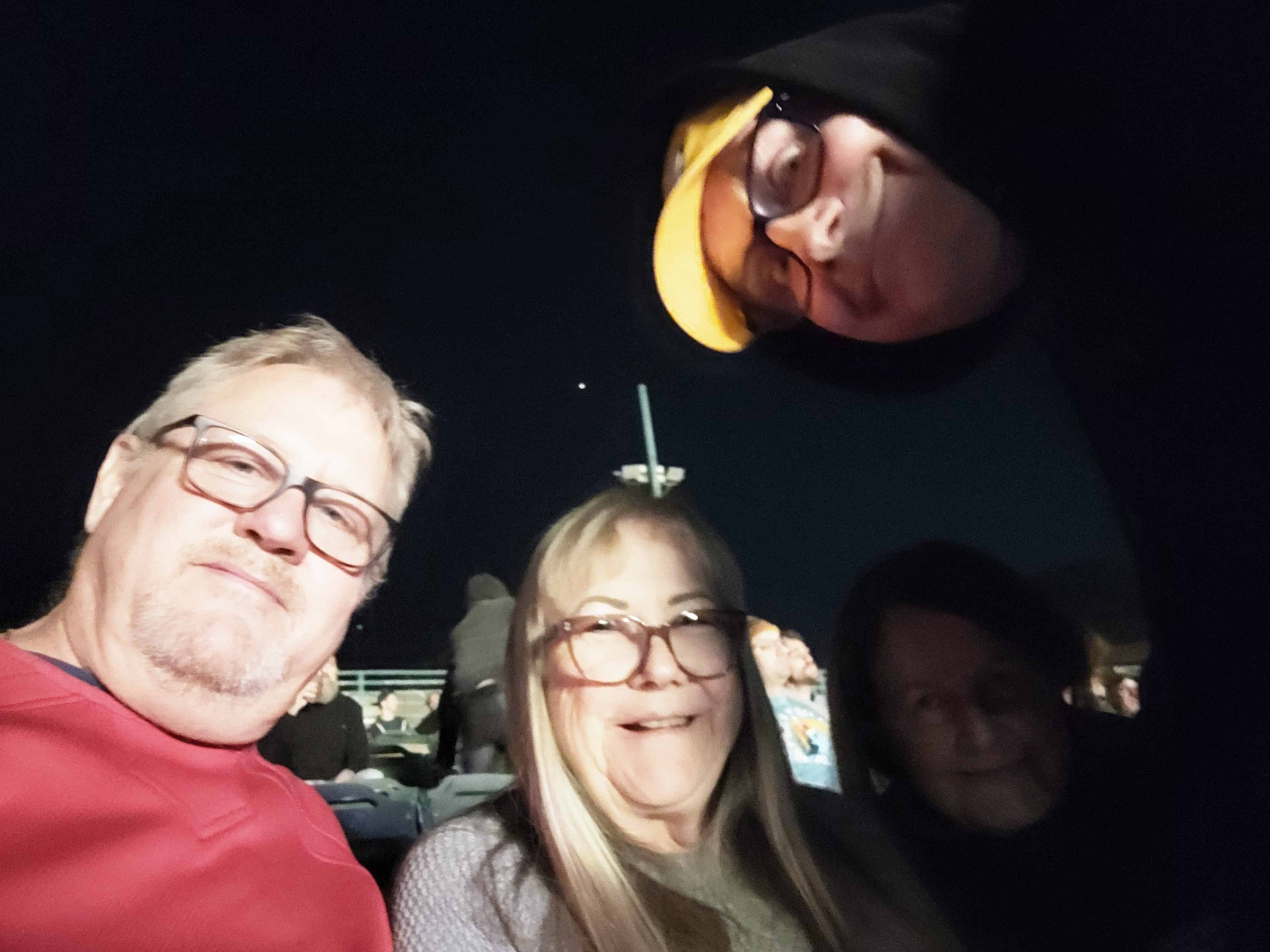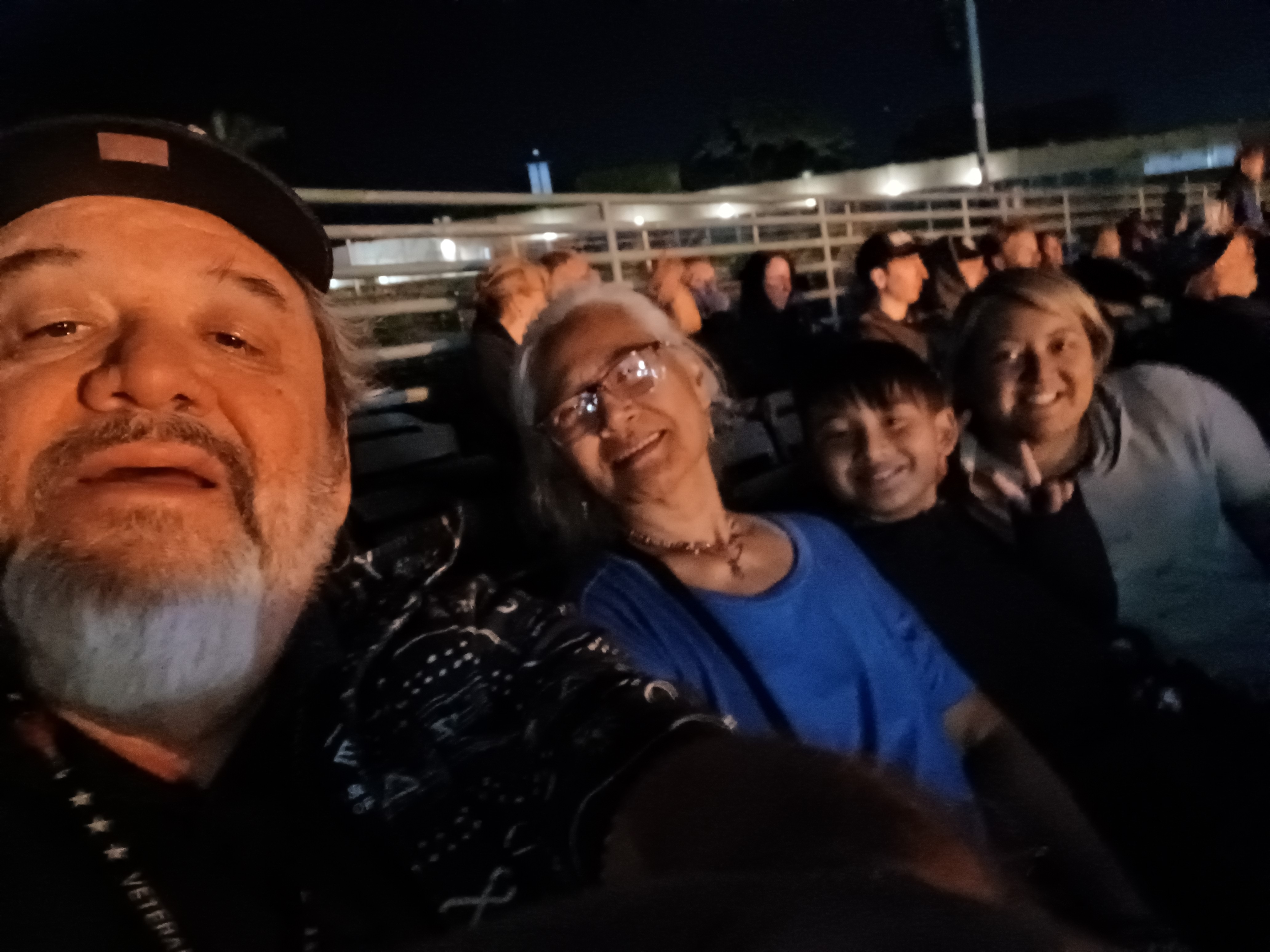 First of all, I must send out a huge thank you to security (Elsa) and the first aid tent. They could not have been more accommodating, professional, courteous, as they too care of Vicky. When returning to our seats, the path was extremely dark as the lights were turned off during the War On Drugs set. Another patron came from behind her and knocked her down breaking her glasses and she received a cut above her eye. Lots of blood. Everyone came to her aid. We unfortunately had to leave to get her to the VA emergency. Security offered my family a place to stay while we waited for the main reason we came which was ELO. They headed back to their seats while I rushed Vicky to the hospital. It was still an hour before the ELO set so I decided to head back and Elsa allowed me to join my 10 year old grandson and my daughter to enjoy the wonderful set put on by ELO. Thank you to North Island County Credit union, Joe Walsh, Stephen Stills, Lucius, Flaming Lips, War On Drugs, Drew Cary, and of course Jeff Lynne and ELO. It was important to me to share this music with my grandson. Rock music is something we share and to bring him to see a band I saw in the mid ‘70s was extra special. Thank you VetTix.org for providing my family access. Vicky ended up with a small gash and the VA took care of her immediately. Today she rested, and my grandson gave me a hug and thanked me for taking him to the concert.