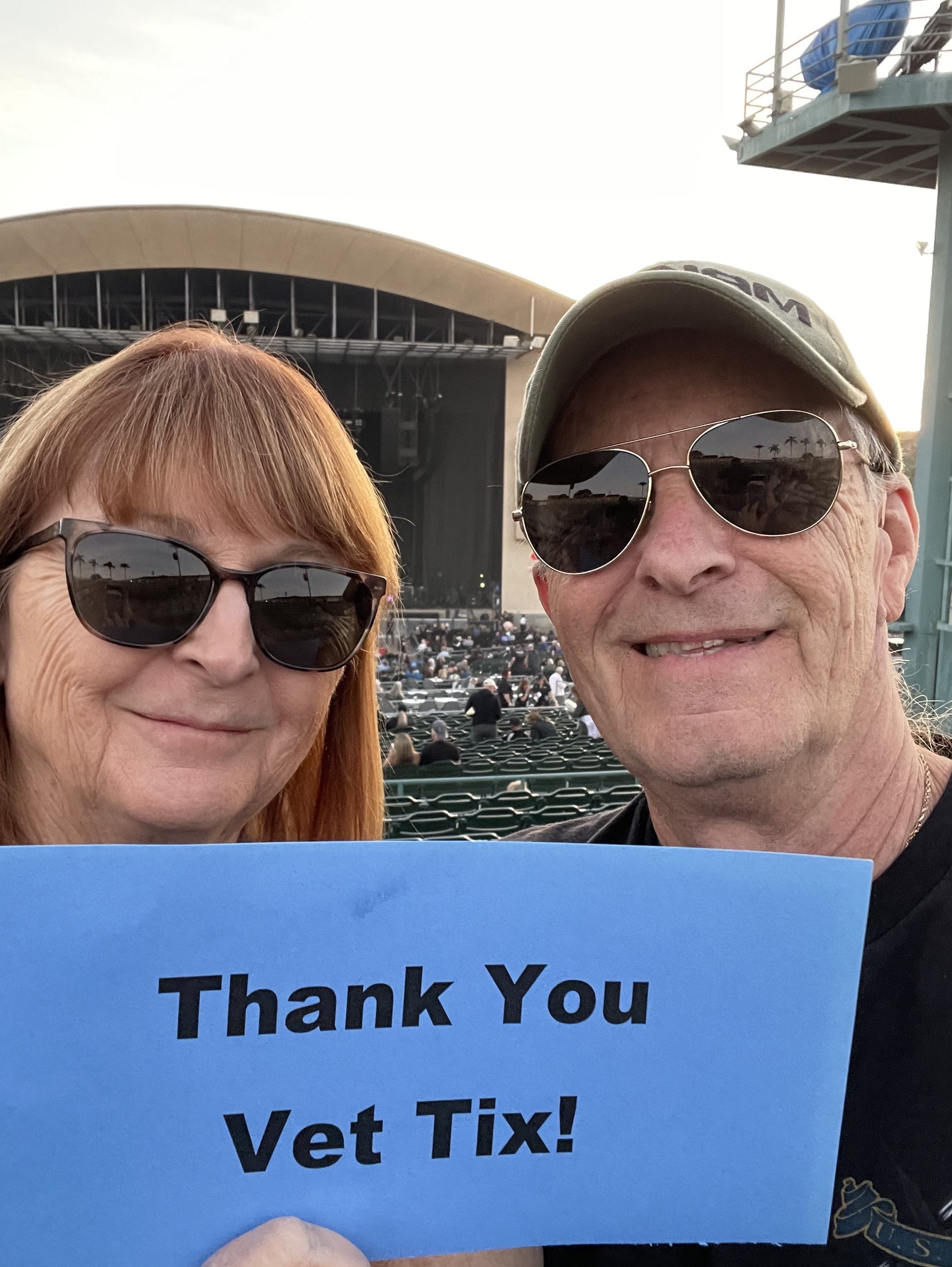 Thank you Vet Tix and donors, once again you came through . Awesome evening, we absolutely had a great time!! Marines 1974 - 1976 From Whittier Ca
