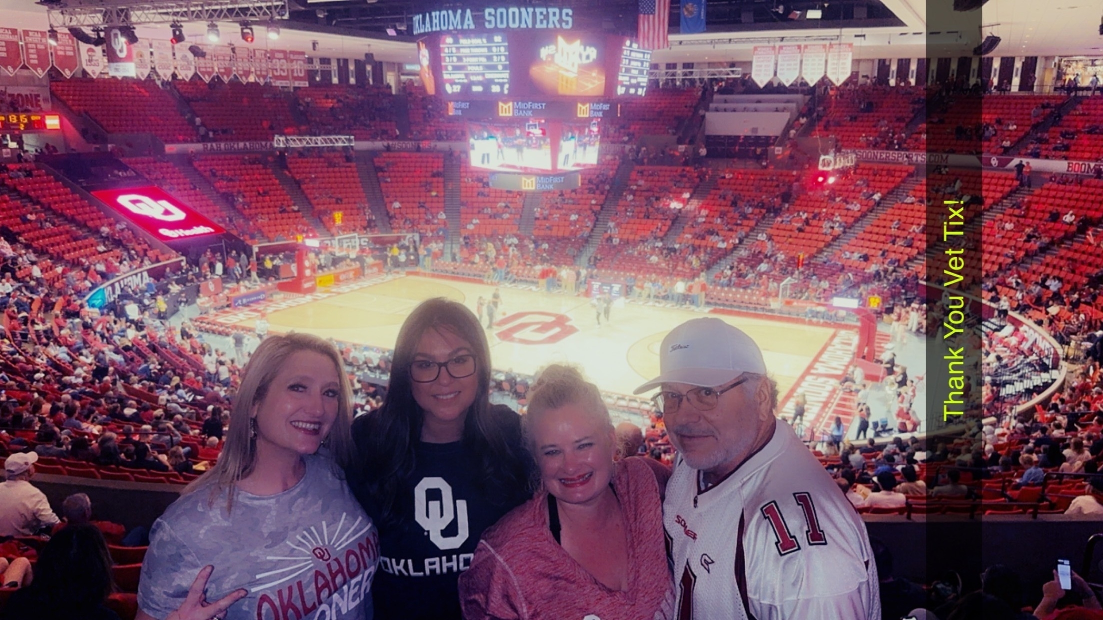 Thank you University of Oklahoma for tickets to an amazing game against Cincinnati. Went all the way down to the wire and we won by 1 point. Such an exciting night of basketball. Thank you for your continued support of veterans.