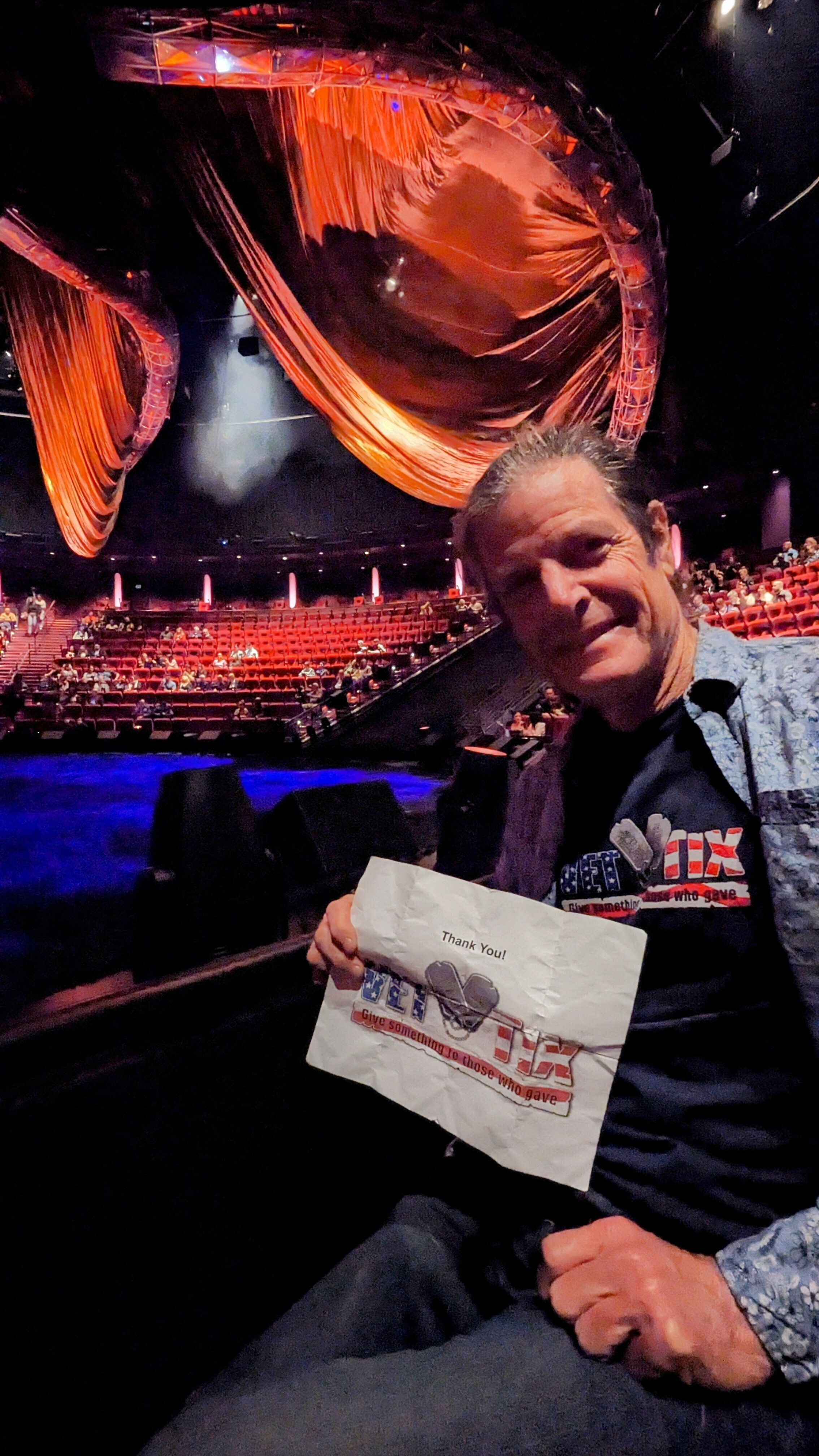 Thank you some much! Great second row seats from the stage. Had such a great time the wife and I, amazing show. Well done Vet Tix ! Get up the great work supporting us Vets. Thank you again!