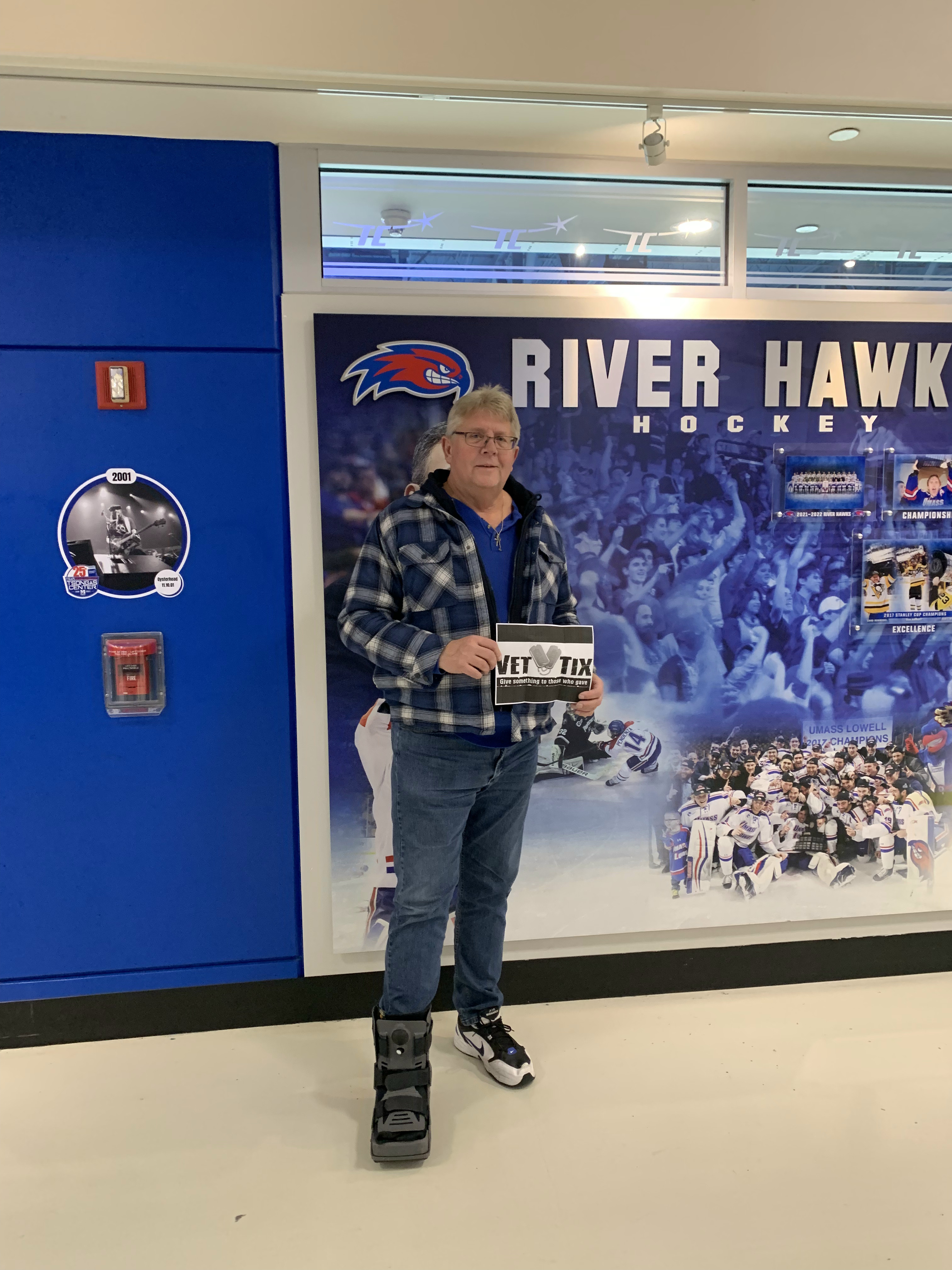 Thank you for supporting our veterans! My sister and I enjoyed the hockey game very much. It was a great game with UMass Amherst winning the 3 on 3 in Overtime. Keep up the good work! Your support of Vets (my sister is an Air Force vet) is greatly appreciated.