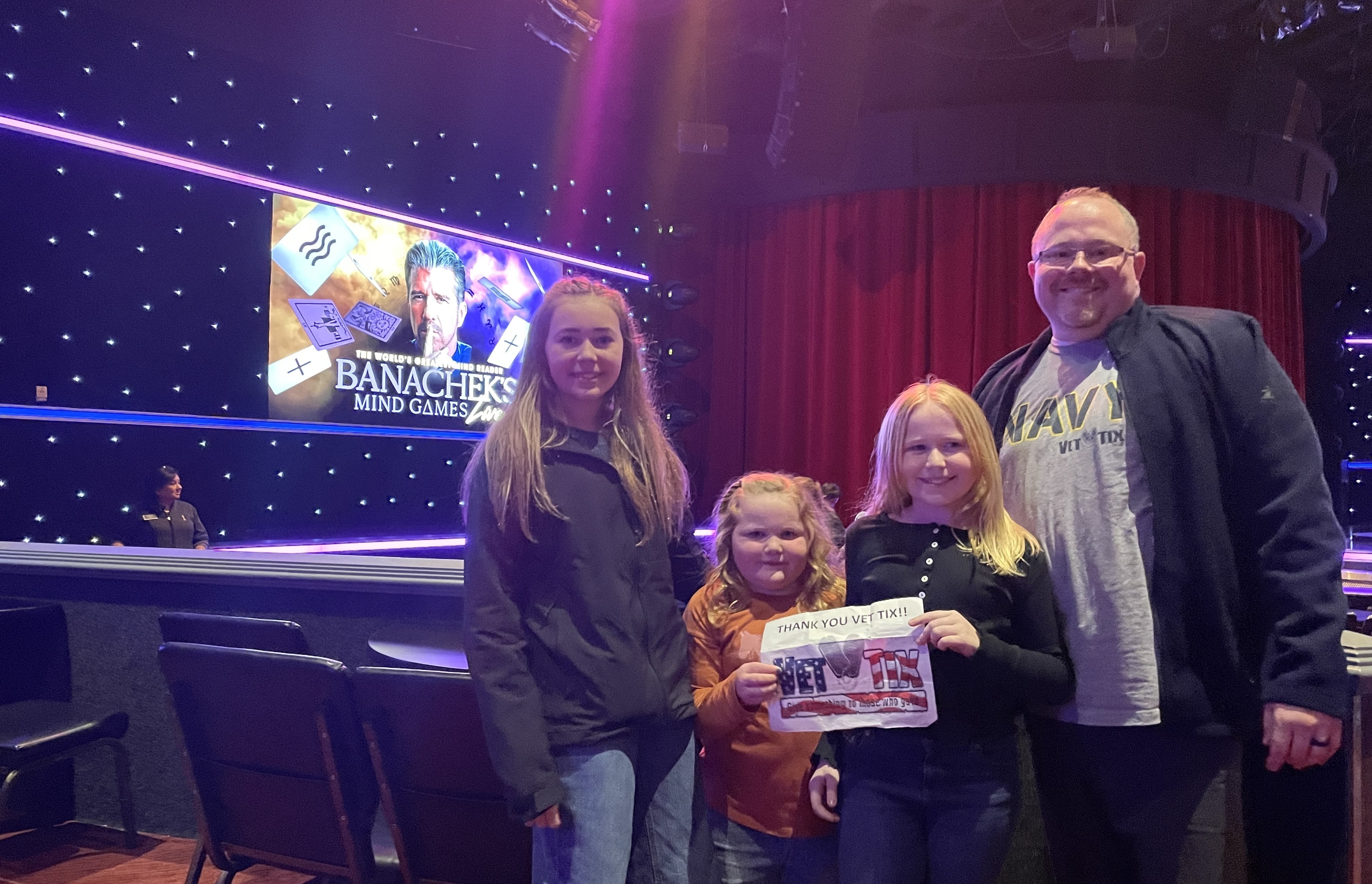 Thank you so much Golden Entertainment for the donation! Banachek blew our minds and was so kind to our kids at the end, even signing their tickets and a book my 6-year-old bought. We splurged and bought two additional tickets so our full family could make it and it was well worth it. Please keep up the kind donations to Vet Tix, we would not have been able to enjoy this sort of show without it!!
