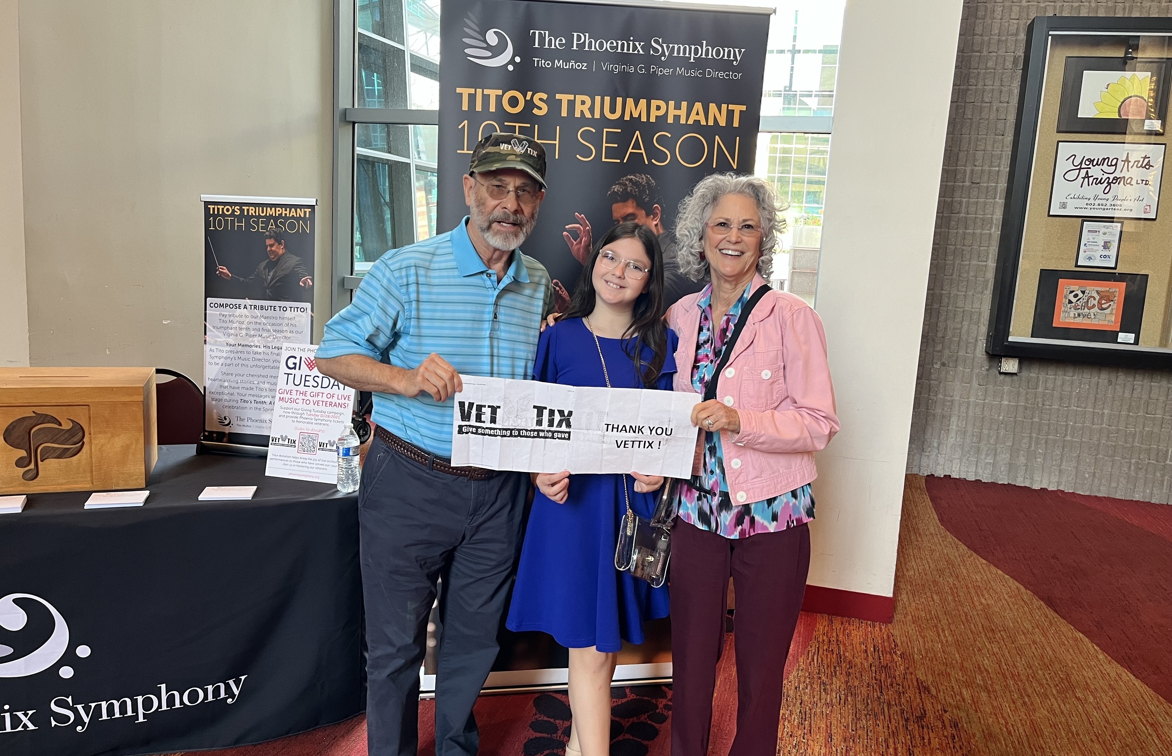 Thank you, Vet Tix and The Phoenix Symphony. We had a wonderful time enjoying the Symphony and look forward to doing it again sometime. We are Holding a Vettix Sign.