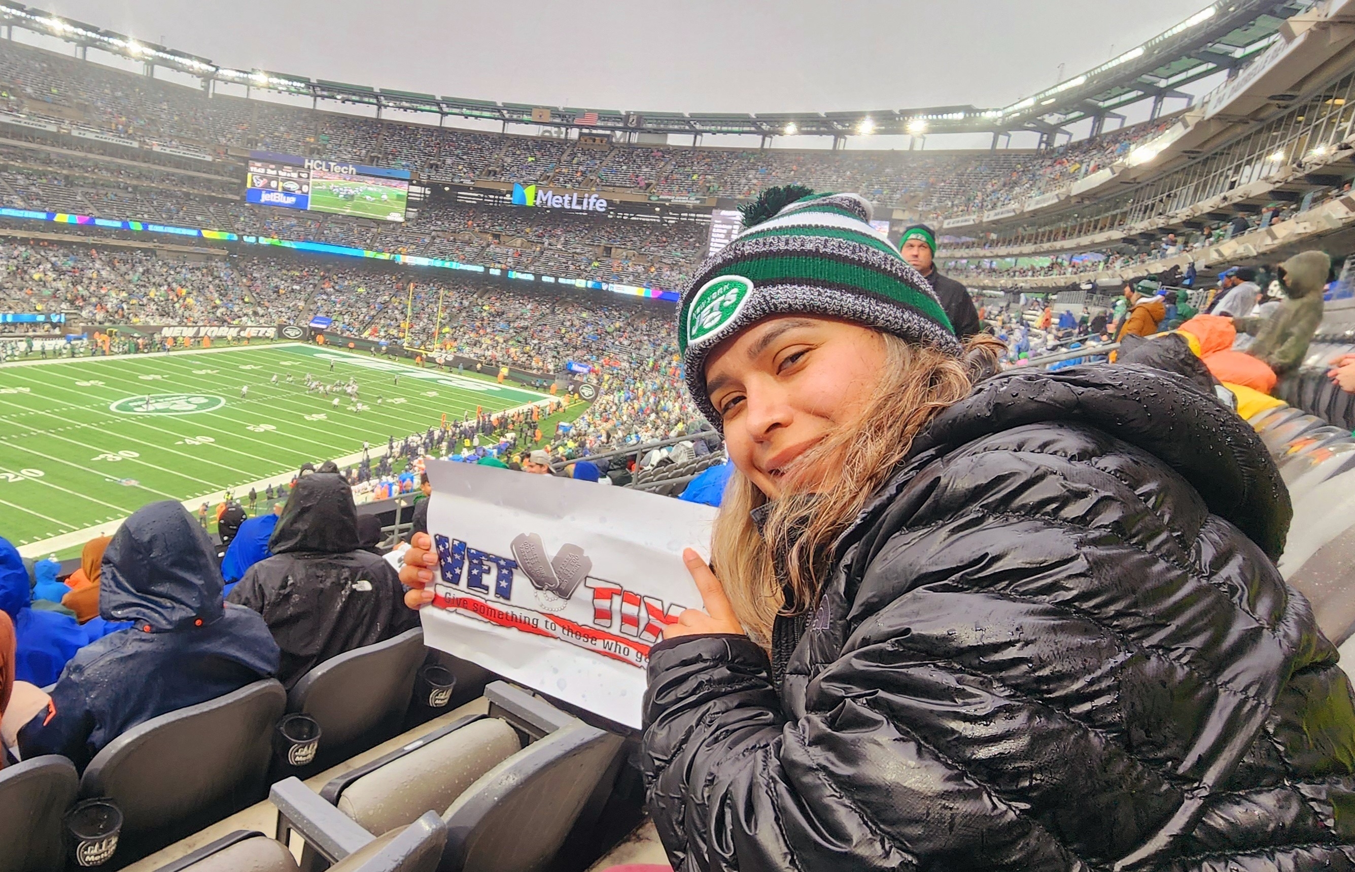 Thank you for the tickets, Jets season ticket holders! We had a great time despite the rain.