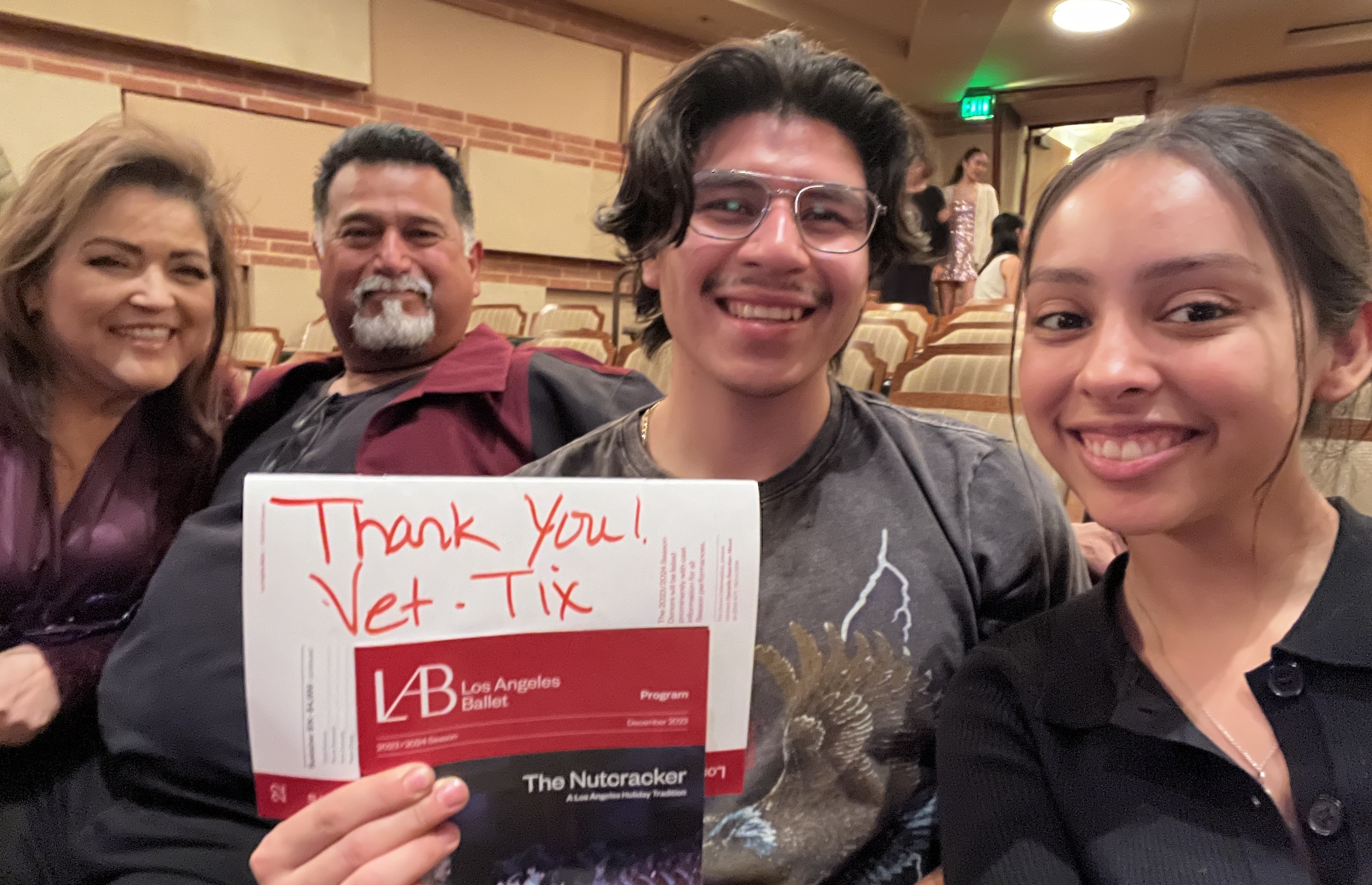 Thank you to the Los Angeles Ballet and VetTix for the Nutcracker tickets. My family and I thoroughly enjoyed the show.