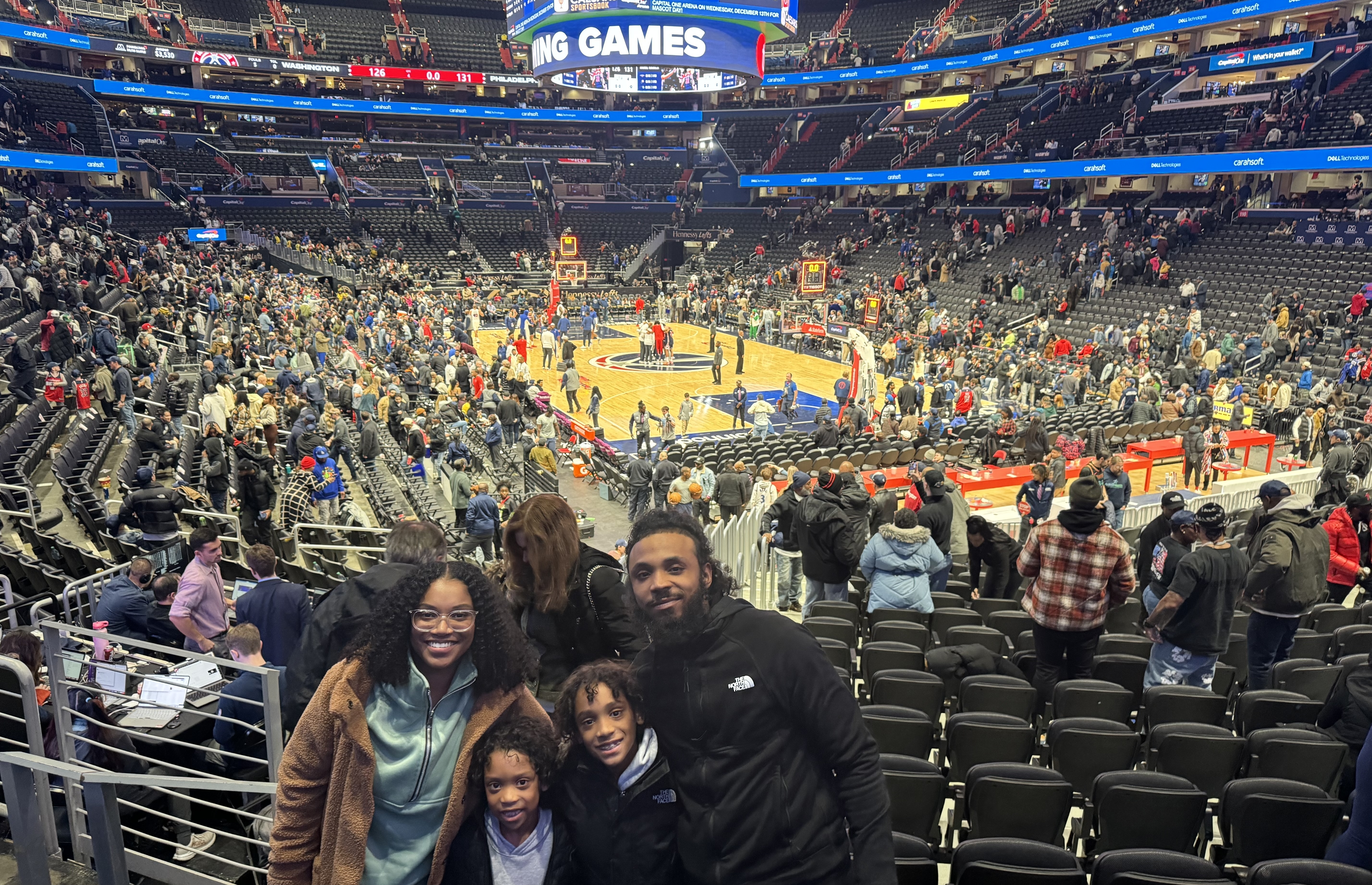 My boys enjoyed this game so much as well. However I posted the wrong picture for the last game, so I’ll post the picture from the wizards and sixers game here. I did forget the sign so please forgive me! Seeing my family have a blast puts a much needed smile on my face. So thank you !!