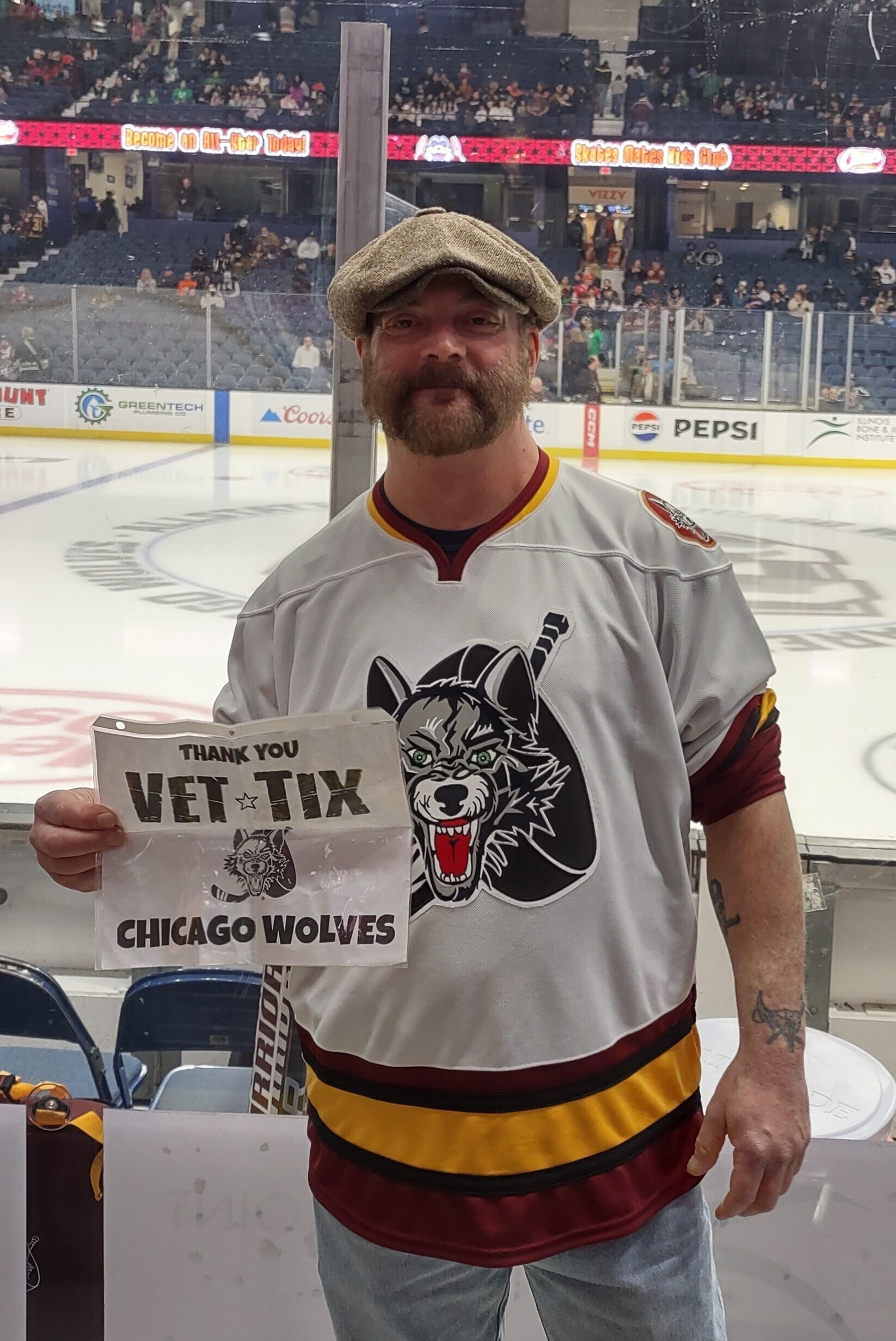 A big thanks to the Chicago Wolves and Vet Tix for the tickets to tonight's game against Tucson. Great seats! Right behind the Wolves bench again! Too bad the boys couldn't pull off the win tonight! My friends and I had a great time. Thanks again!