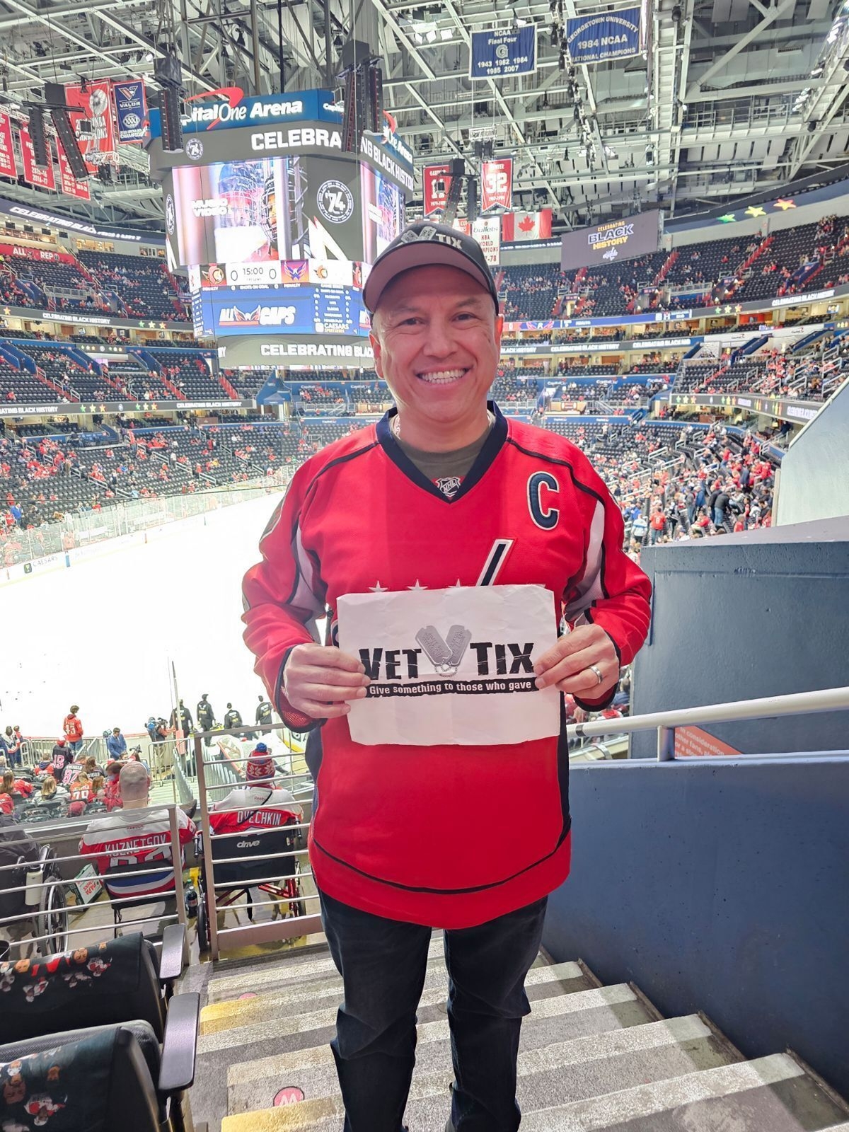 Thank you to the Veteran Tickets Foundation Purchases for the Caps game tickets. My family had never been to a hockey game and it was an awesome experience. Thank you!!