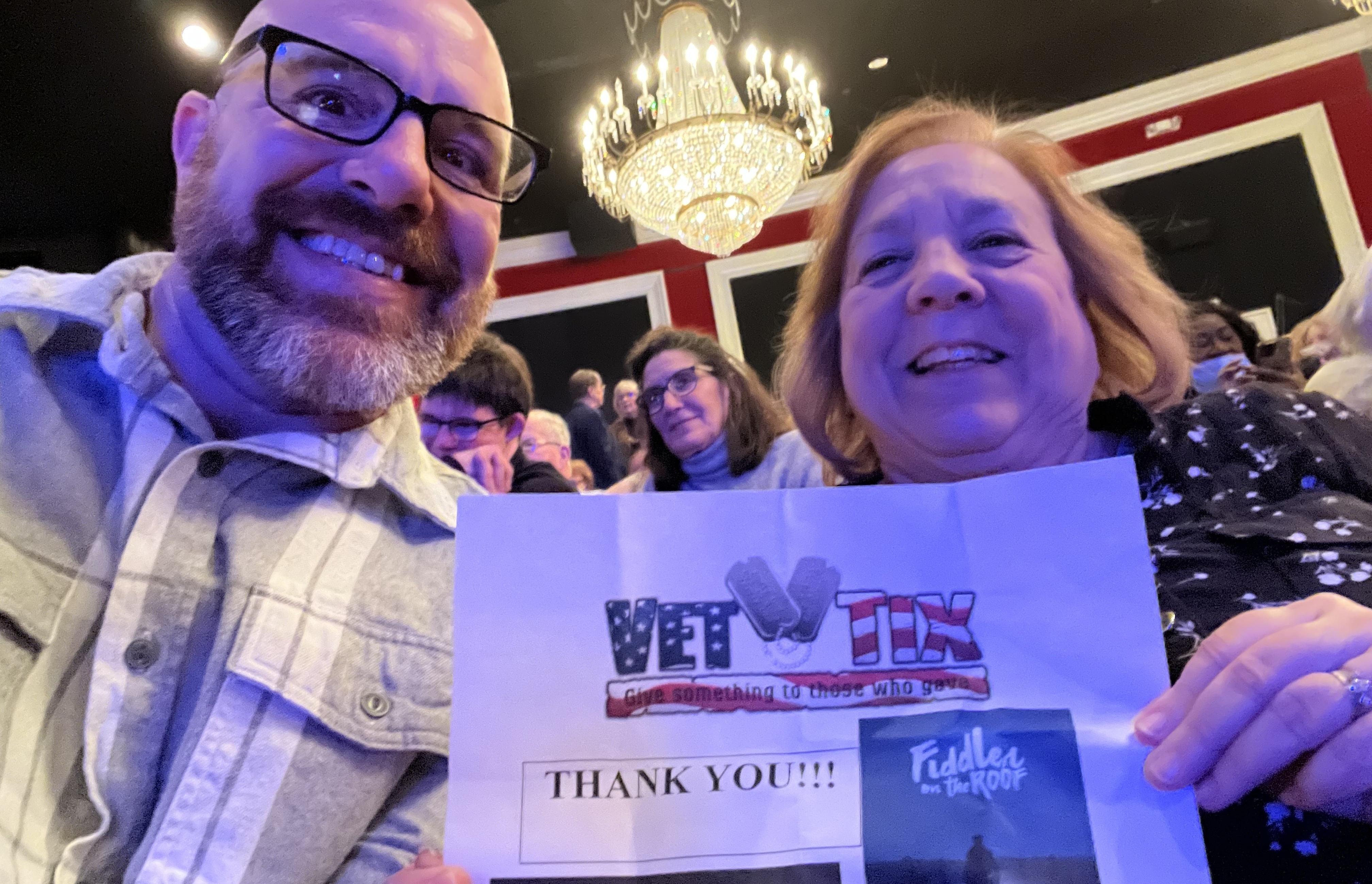 Thanks so much to Drury Lane for these wonderful tickets to see fiddler on the roof. We thoroughly enjoyed the show and appreciate you supporting US veterans!!!