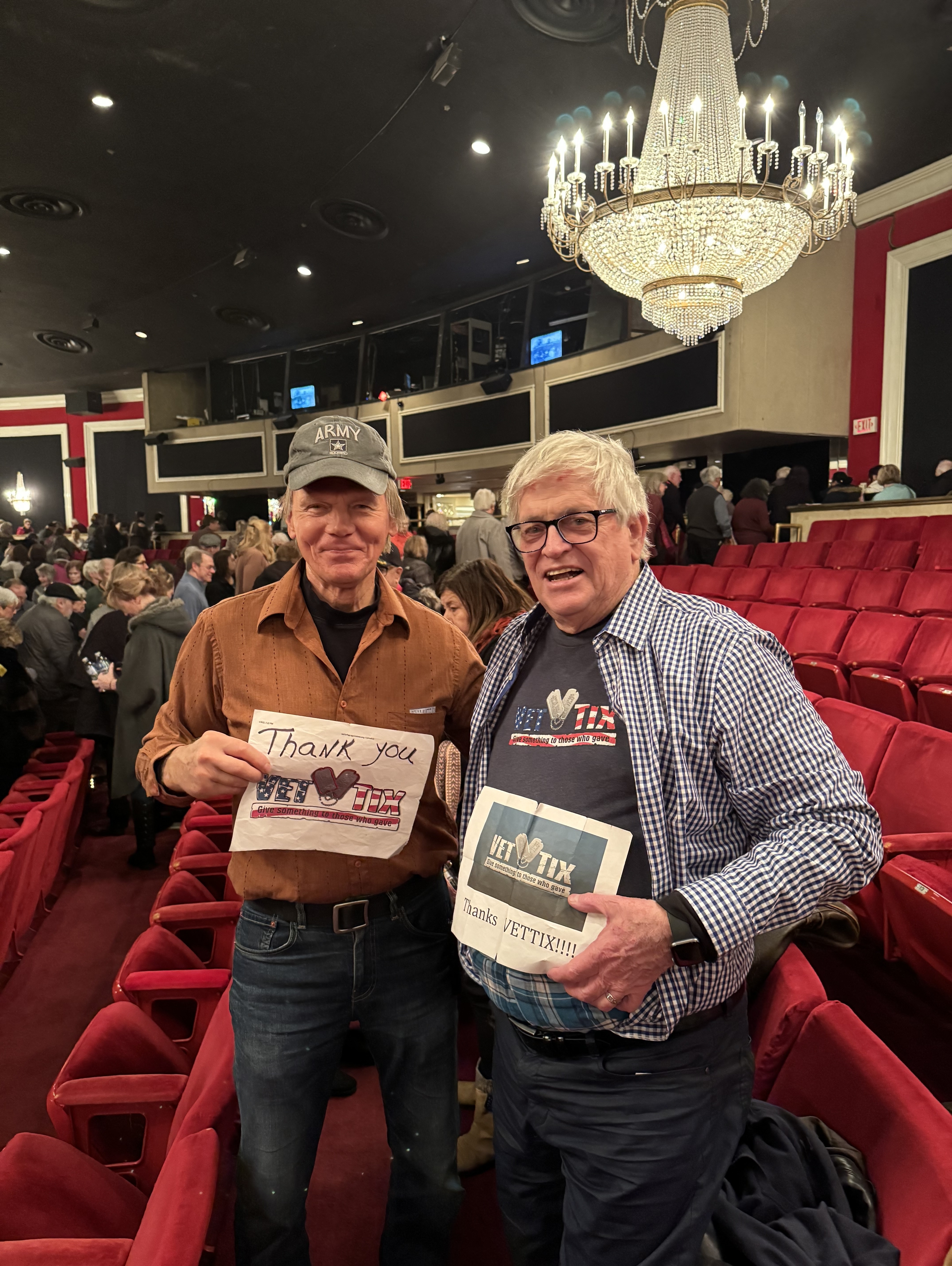 WHAT A FANTASTIC PRODUCTION!!! Better than Broadway! We had an awesome time and met a great fellow Vet who is in the picture with me. Thank you so much VETTIX and Drury Lane Theatre. We love the seats and everything else about Drury Lane and have gone to Afternoon Tea there as well!