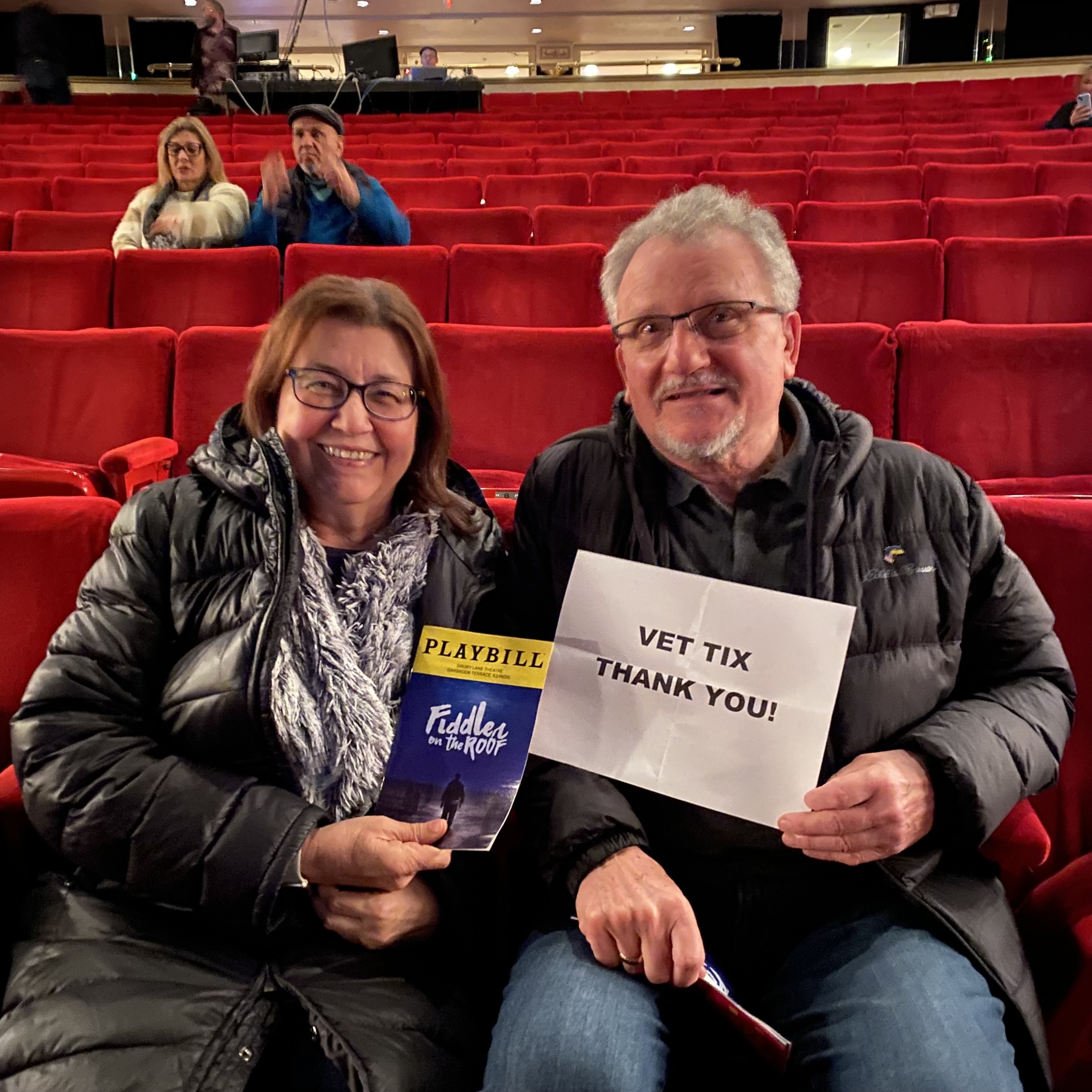 Thank you Drury Lane Theater & Vettix for the tickets to see Fiddler On The Roof on Thursday January 25th. We had a wonderful experience. Great seats.