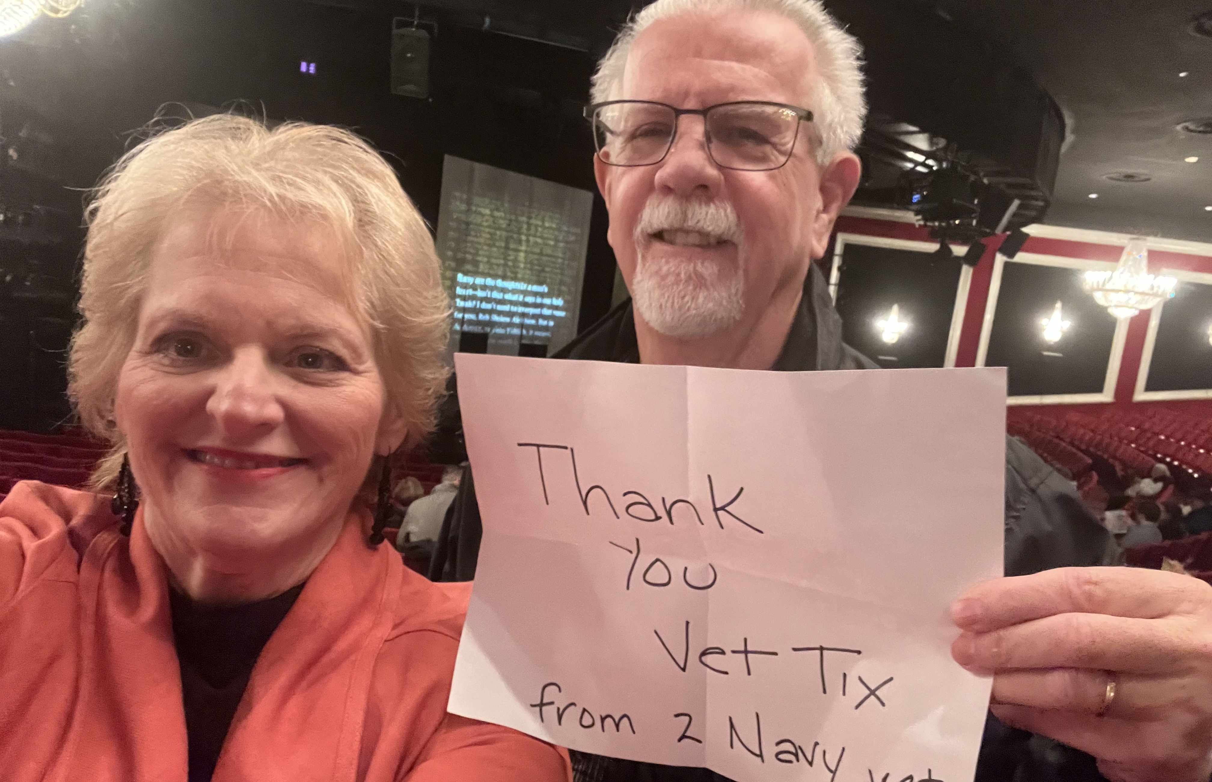 I want to express my heartfelt gratitude for the generous donation of tickets to see "Fiddler on the Roof." Your support means a lot to me and my family and we are truly grateful for the opportunity to enjoy such a wonderful performance. Thank you for your honor and support of veterans!