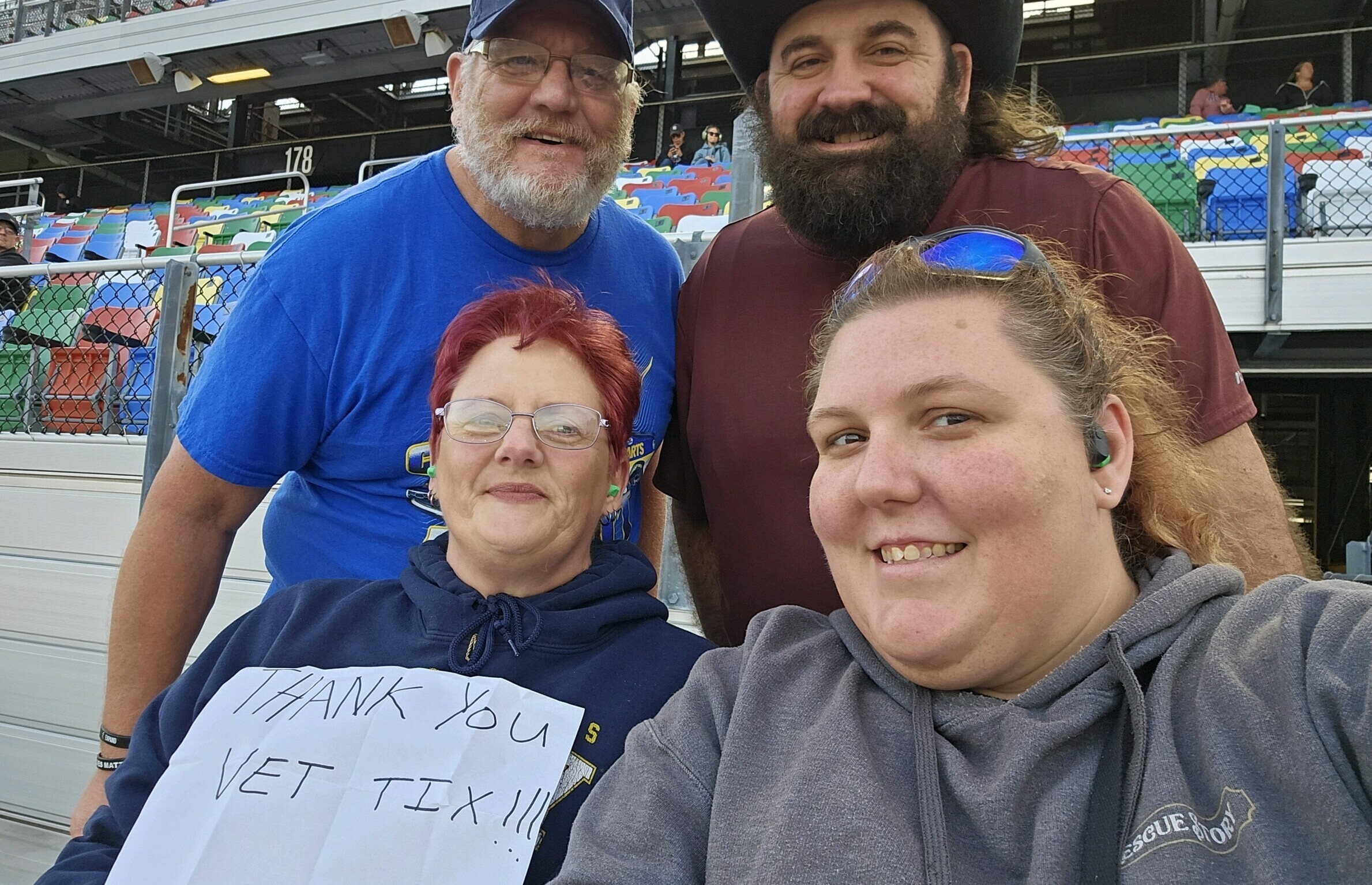 Thank you Vet Tix. We had a great time. You made four NASCAR fans very happy.