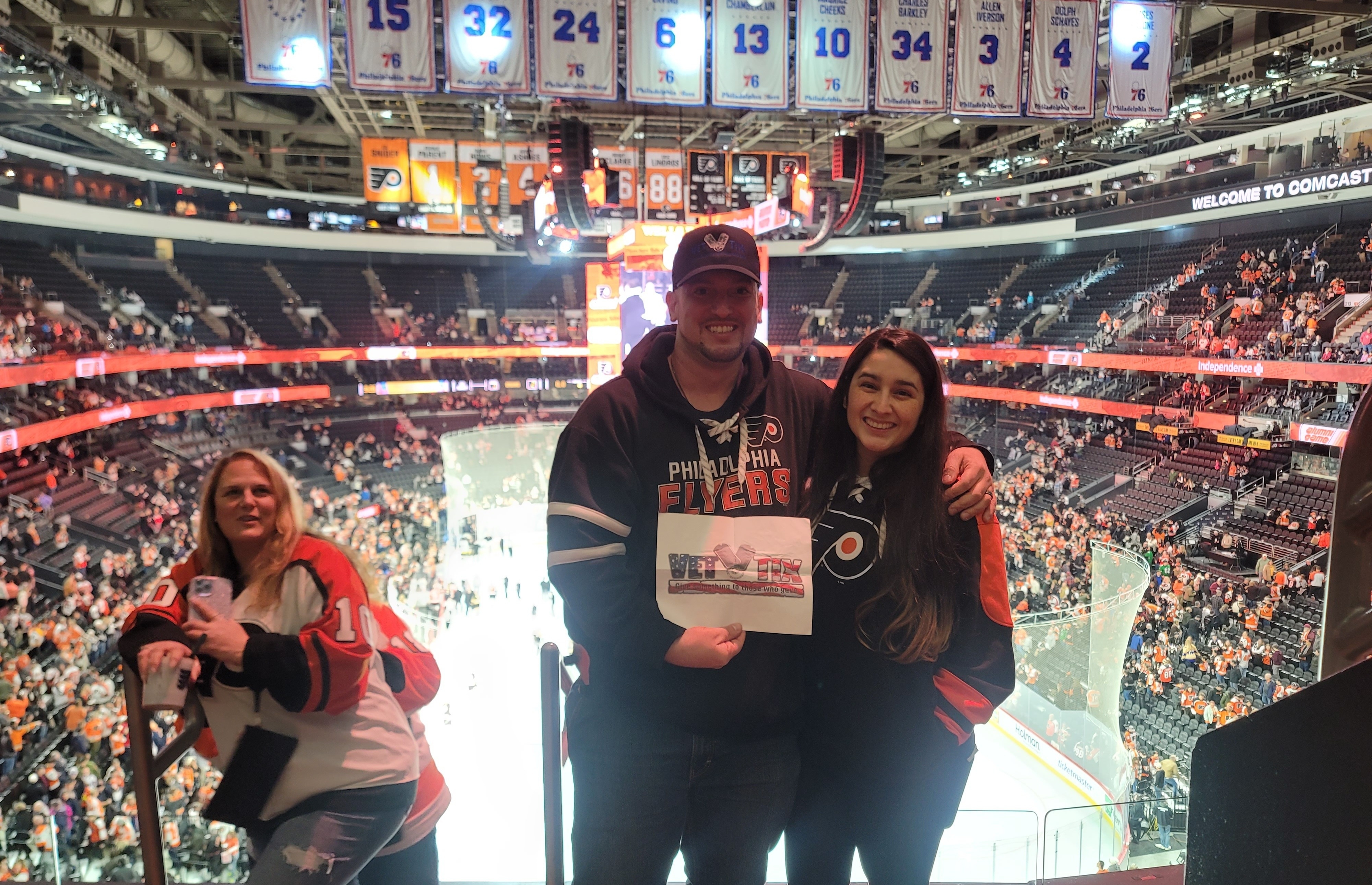 Philadelphia Flyers, Thank you so much for these tickets! The game was AMAZING!! The seats were AWESOME!! We had such a great date night! Thank you!! VetTix, Thank you again for such an awesome experience! I remember wanting to go see Eric Lindros play so bad when I was in grade school! Not only did we get to see that but we also got to see one of the "Original Flyers" play! What a great experience!! Thank you! God bless you all!!