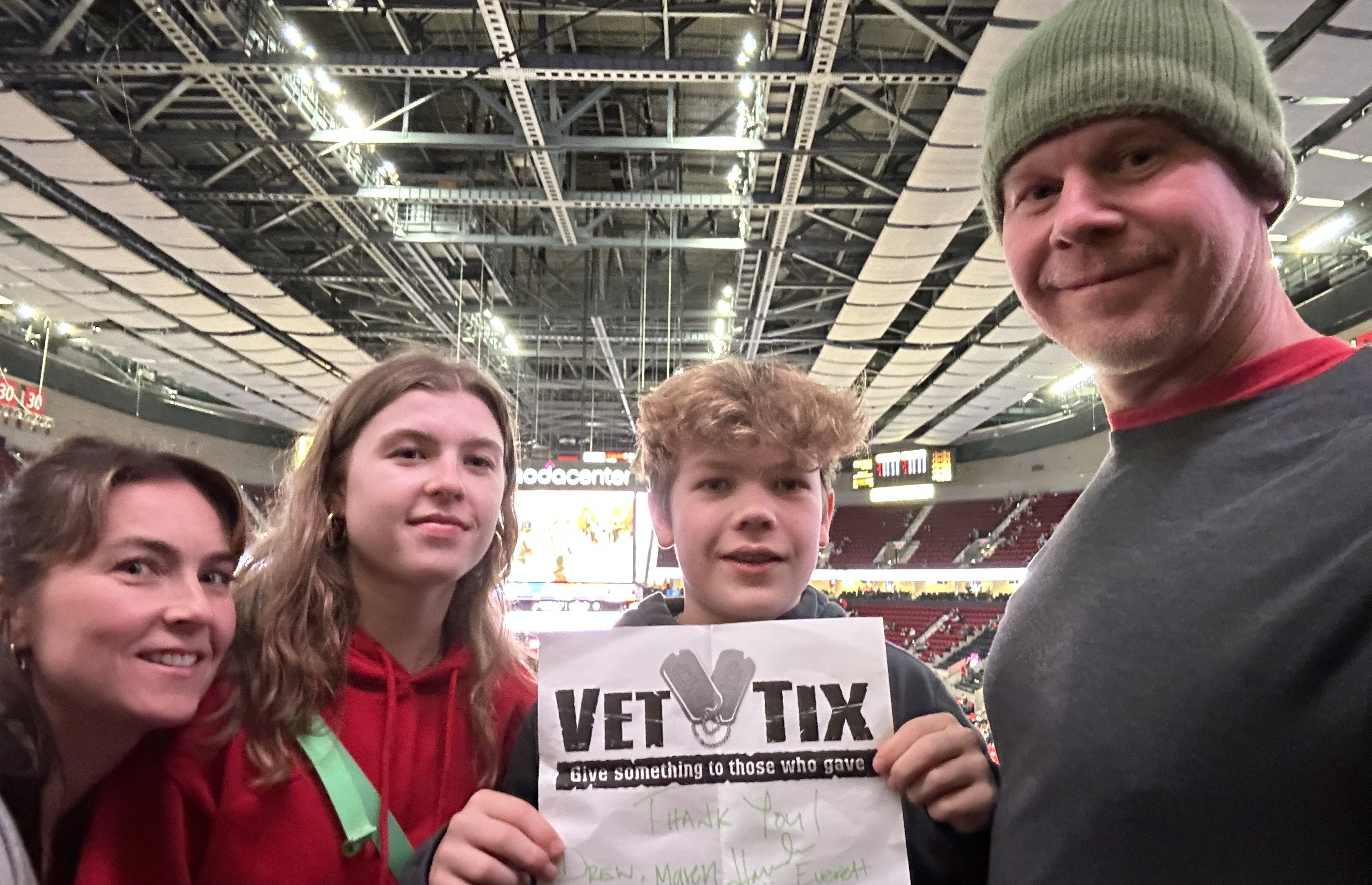 What a way to spend an evening with family. Thank you Portland Trail blazer organization! Because of this donation, we were able to take my brother, also a Veteran, and his wife out for an evening and another great game. Again, Thank you very much. Ben