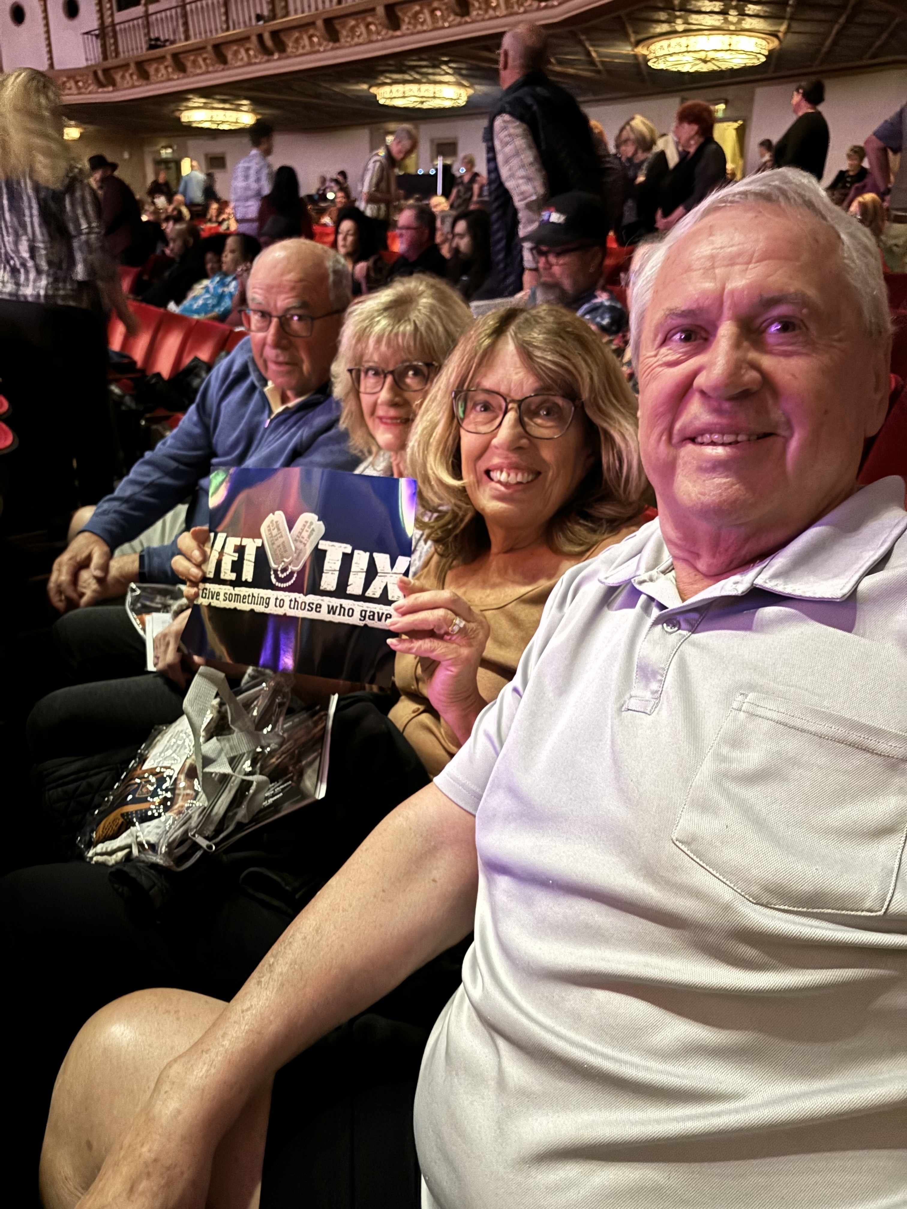 Thank you so much for our tix. We loved the show and appreciate all that Vet Tix and the Donors do to help the veterans!