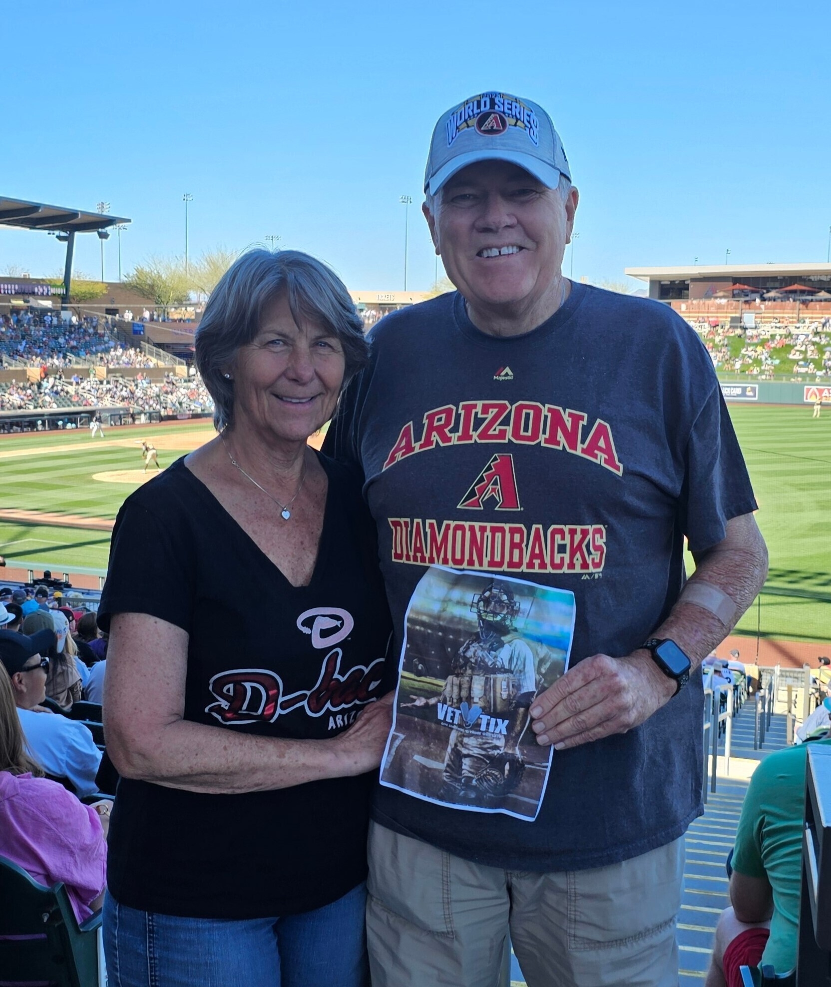 Thanks to VetTix and the Arizona Diamondbacks for the tickets to the Diamondbacks vs Padres game. We had a lot of fun at the game, saw some great plays and players and the Venue is terrific. Good Luck Diamondbacks, it's back to World Series and bringing back some Hardware !!!!!!!!!
