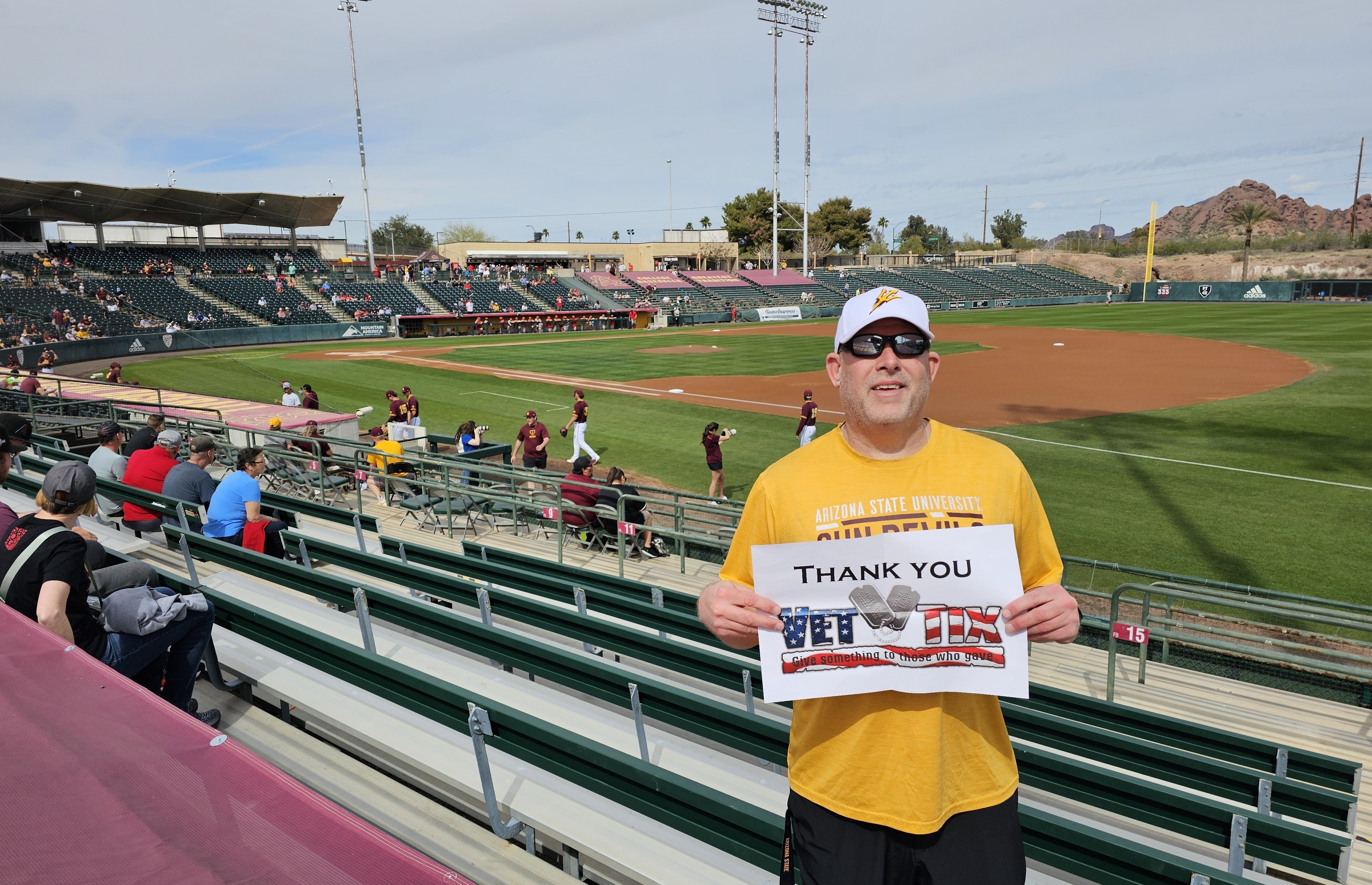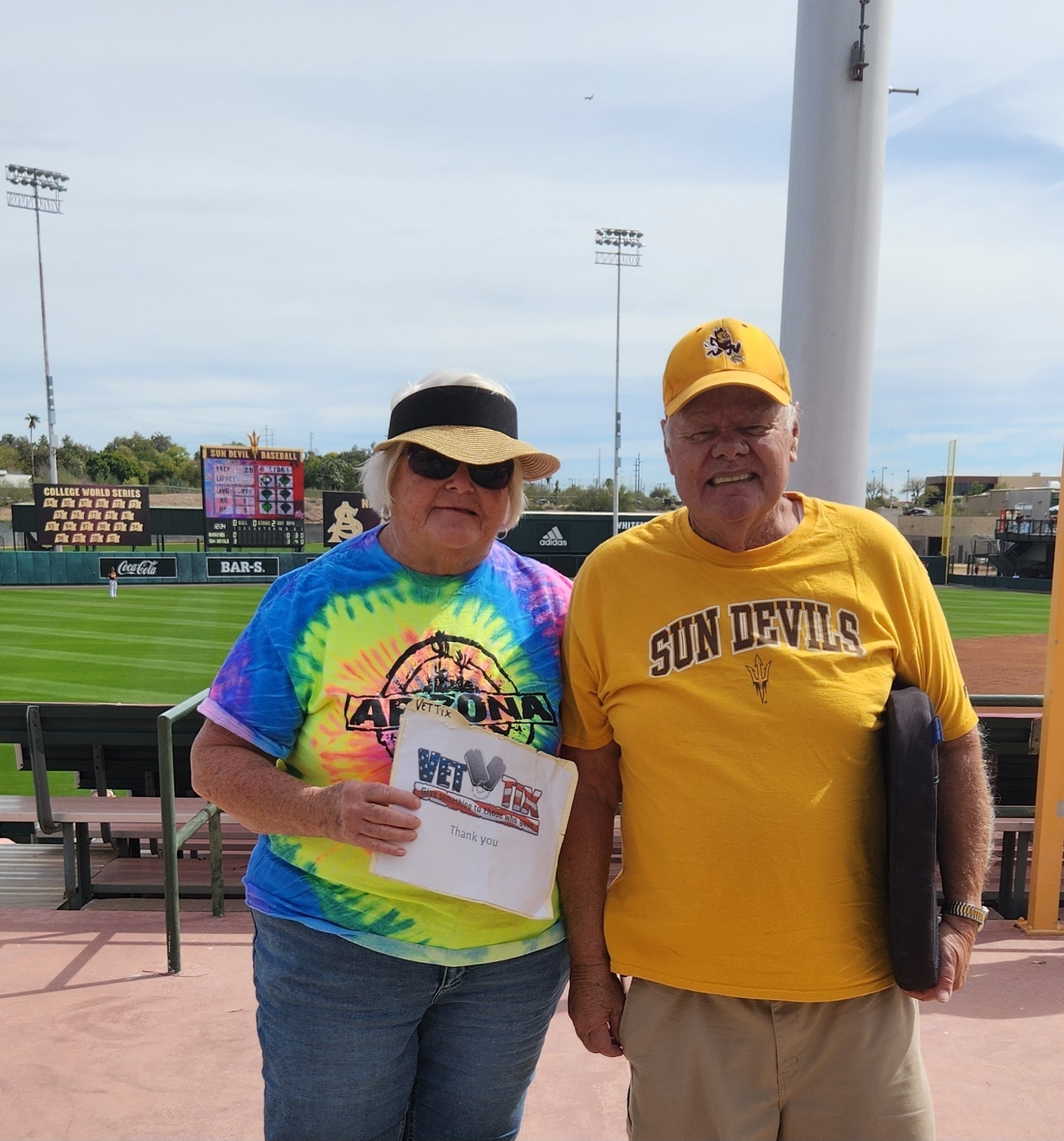 I would like to thank Arizona State University Sun Devils (ASU) for the tickets to see their baseball game vs Ohio St. My family and I enjoyed the afternoon of sun, fun and great baseball. Thank you for honoring us veteran's.