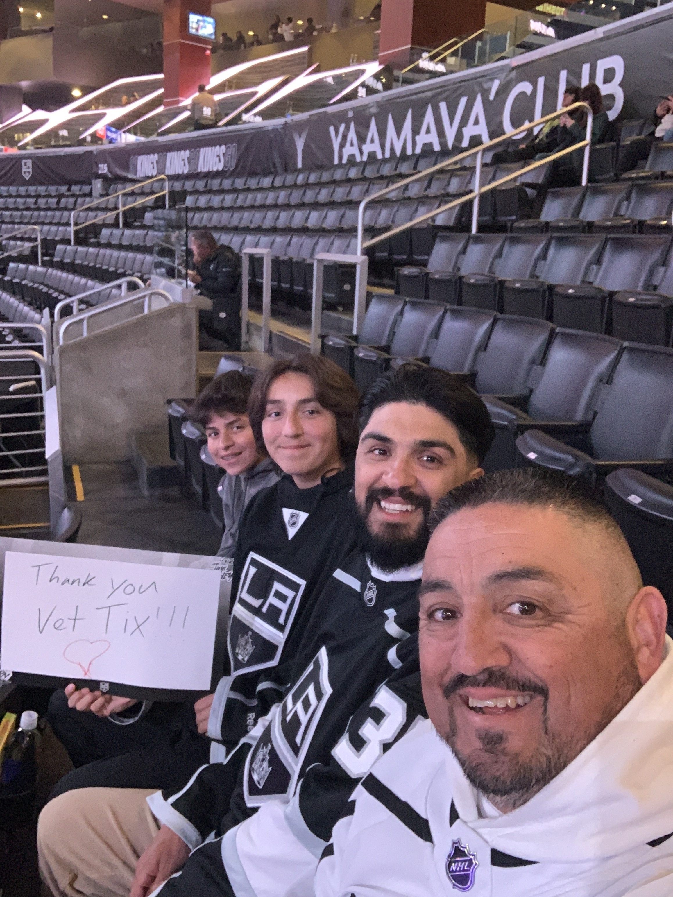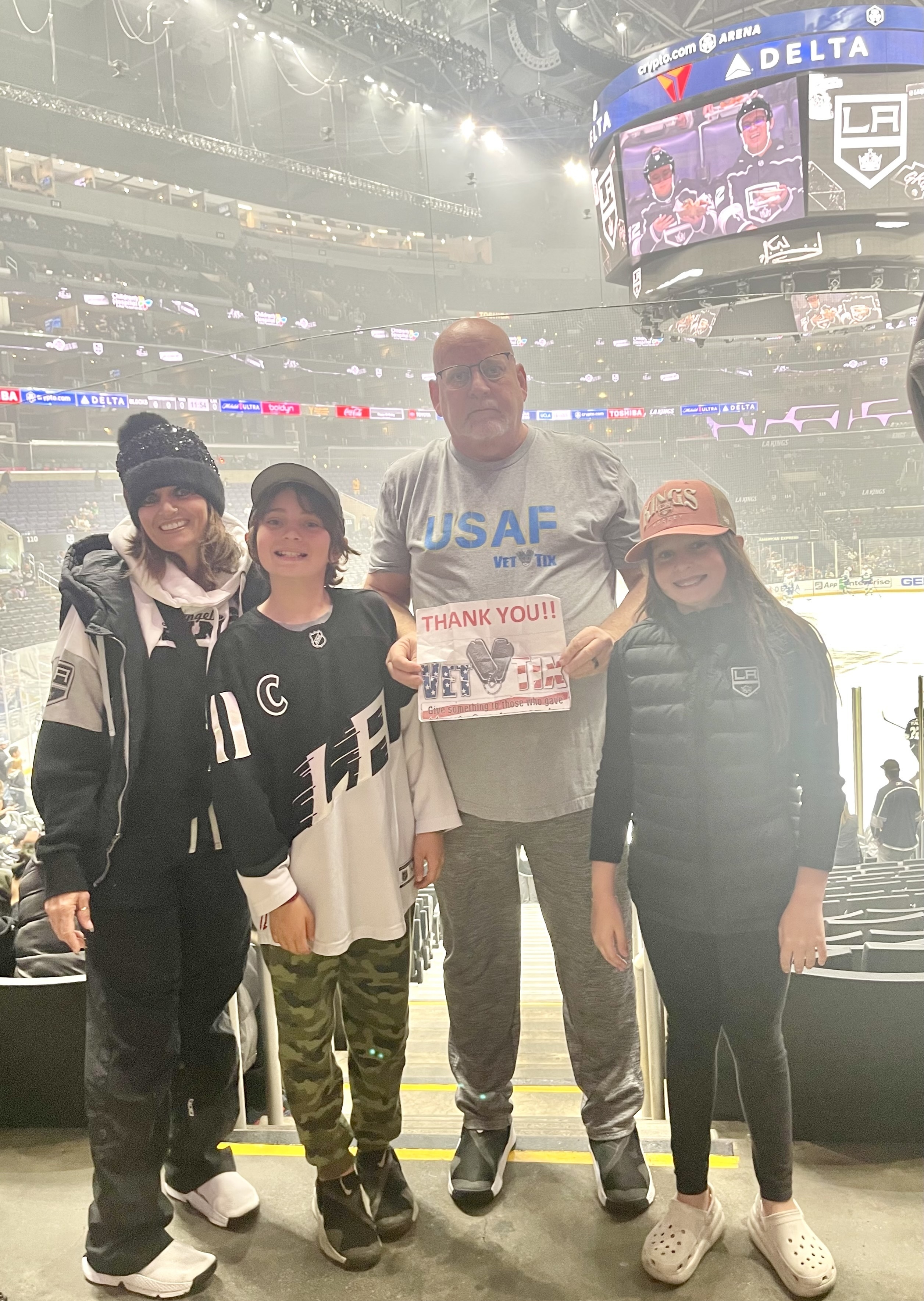 Thank you to the Los Angeles Kings for the tickets to watch the Kings take on the Vancouver Canucks. My family and I appreciate all the support the Kings do for present and past military members. Go Kings Go
