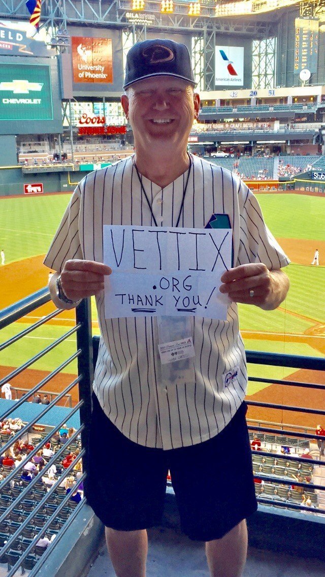 I just can't thank doners and organization enough. I'm always spreading the word and encouraging other vets to take advantage. My income does not permit me to enjoy these ball games without your help. Thank You so much Vettix!