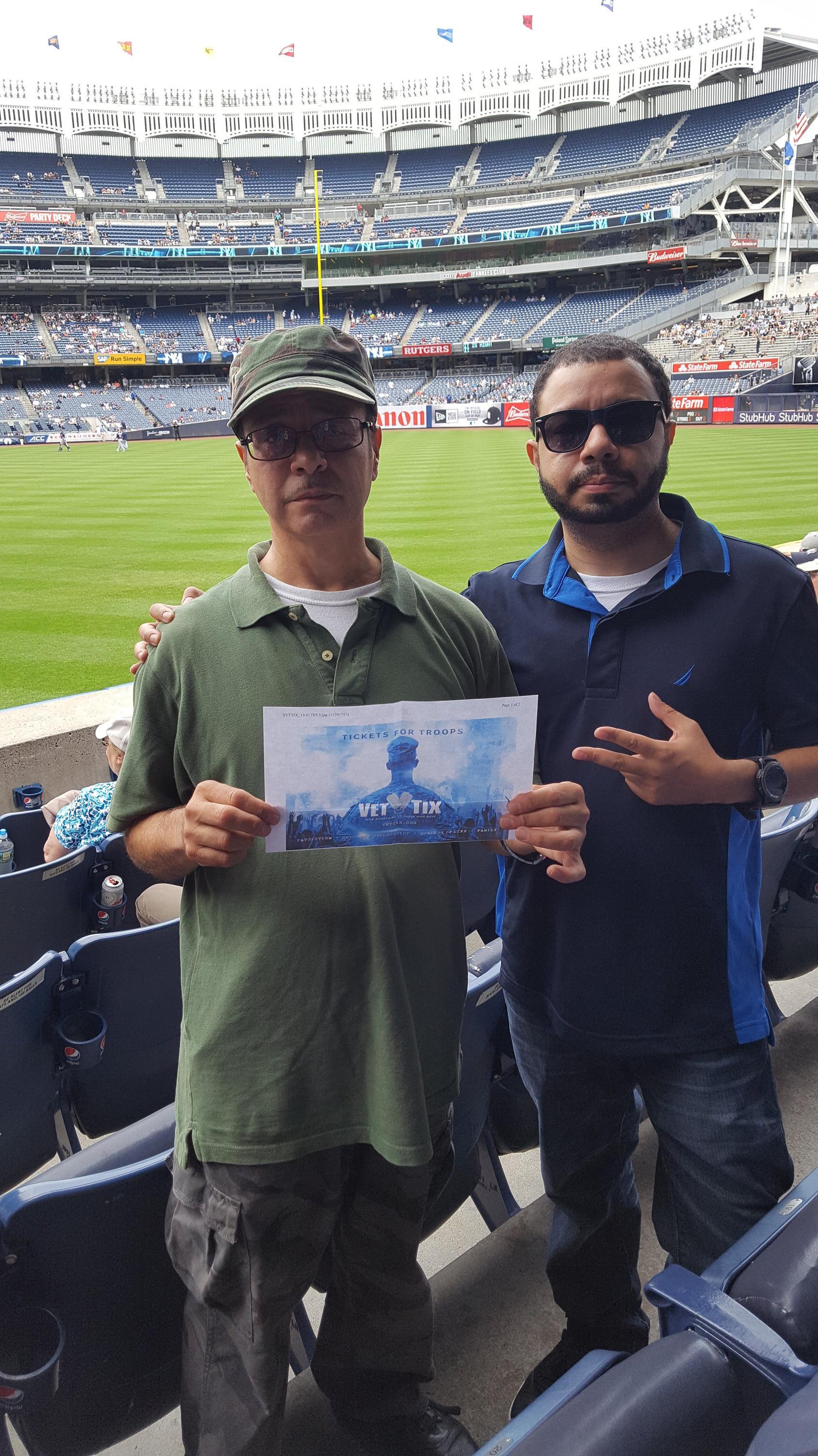 I want to thank Vettix, MLB, NY Yankees and all the donors that made it possible for me and my family to enjoy a great baseball game in Yankee Stadium. It was an awesome game and great experience thanks to all whom made it possible God Bless, thanks!