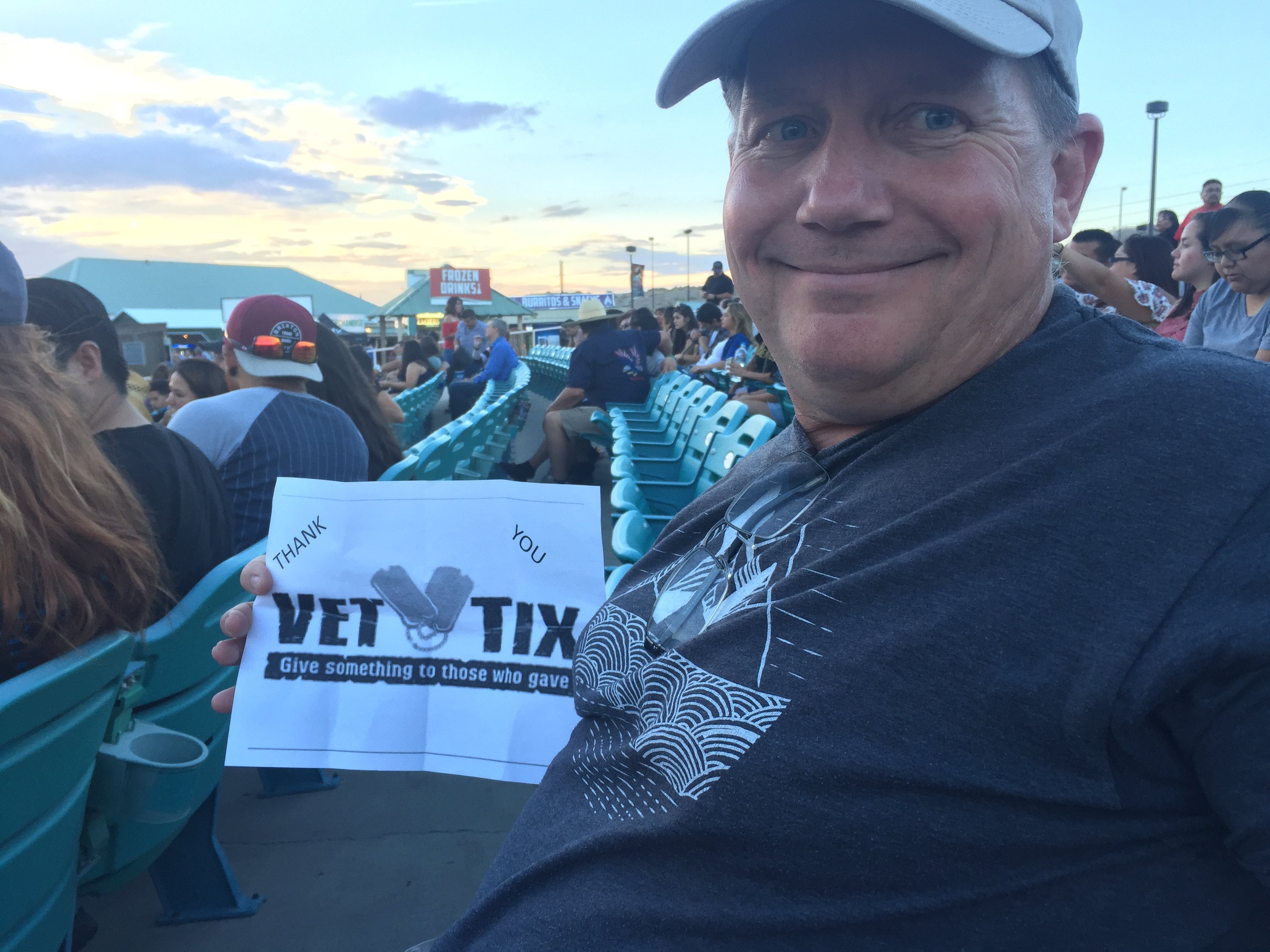 I want to thank vettix.org and the donors who donated the tickets it's not very special often you get to go to concerts with friends and family and enjoy yourself some fun and this gave me that opportunity and I thank you for the wonderful time