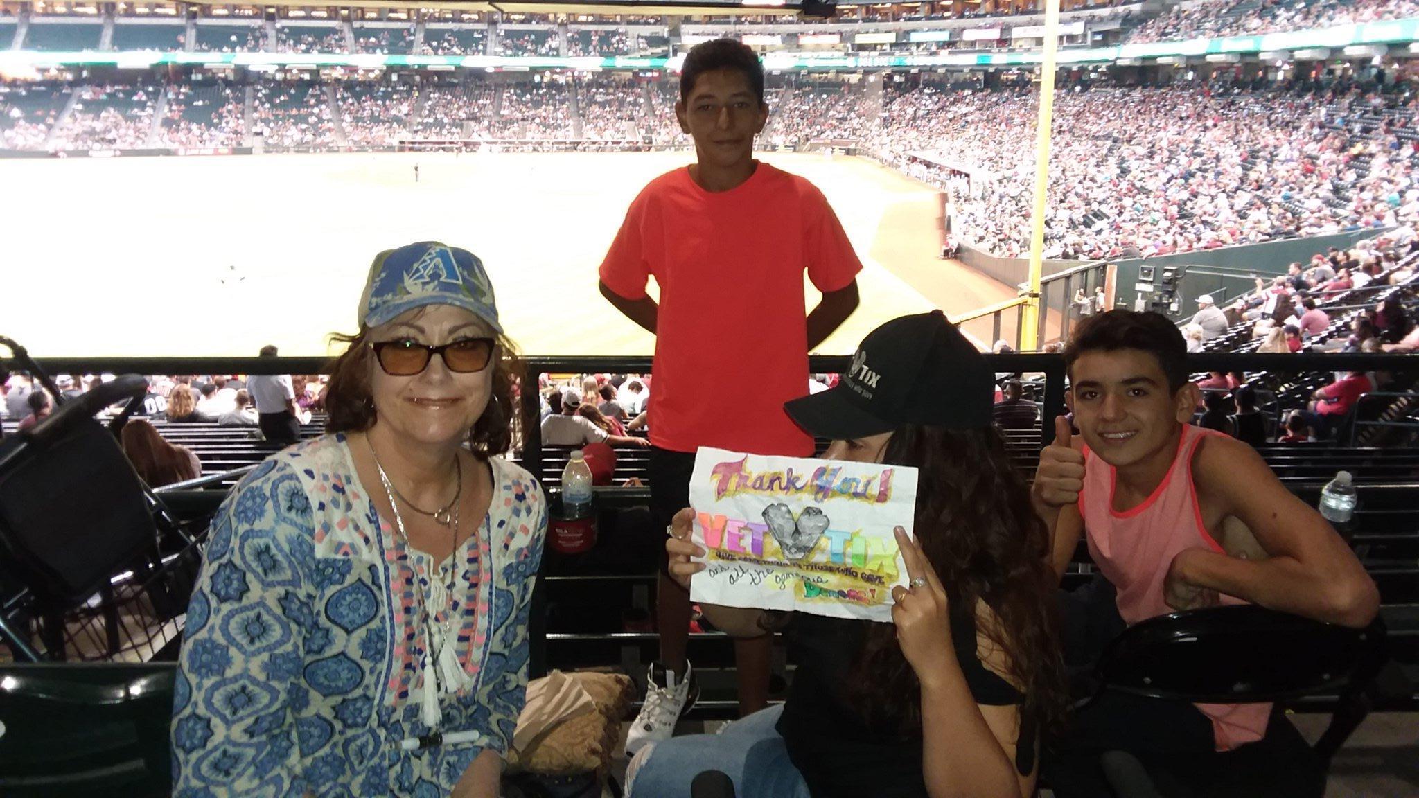 The tickets we received to the Diamondback game were wonderful. We all enjoyed the game immensely. Thank you so much for making this possible. It was also nice that you gave us an exciting conclusion to the game. Way to go Diamondbacks!