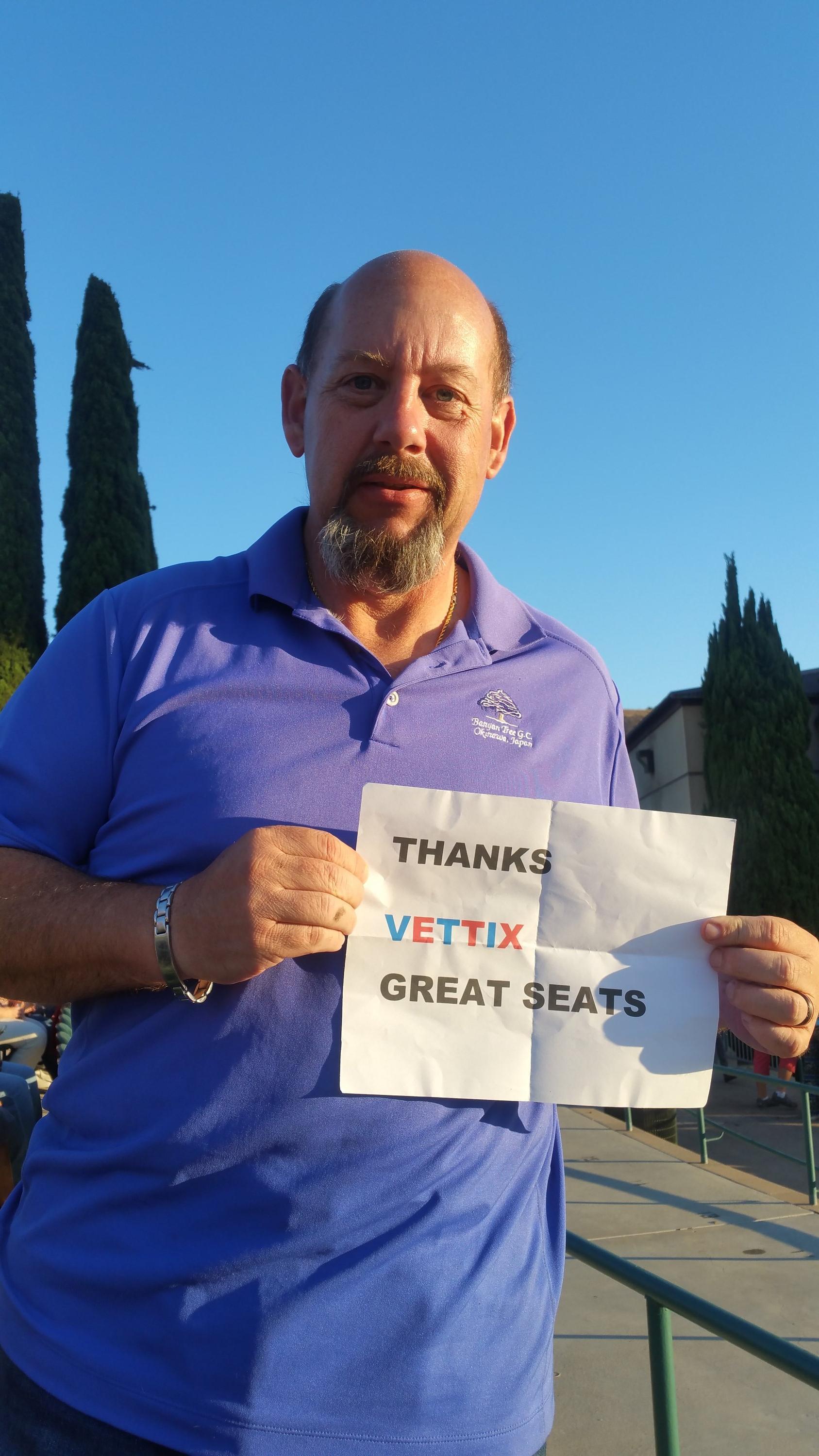 Thank you to Live Nation & VetTix. We brought friends with us to the concert and had great seats. It was a lot of fun and very appreciated. Ken