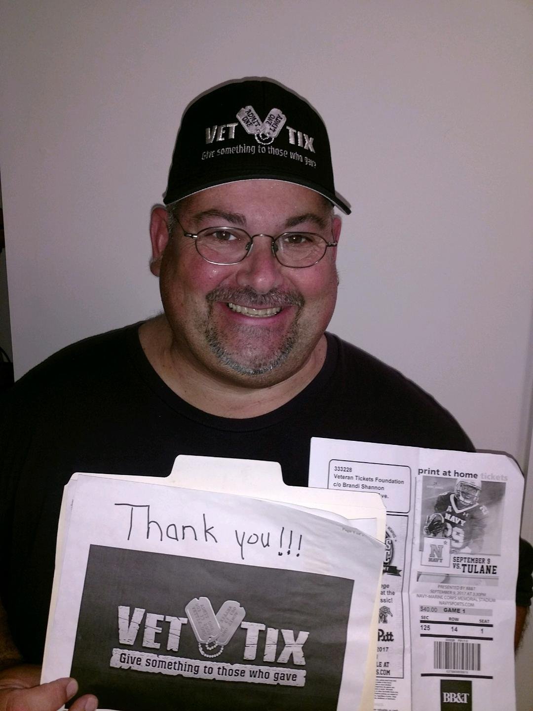 Thank you for donating your tickets to Vet Tix for the Navy game. It was an awesome experience.